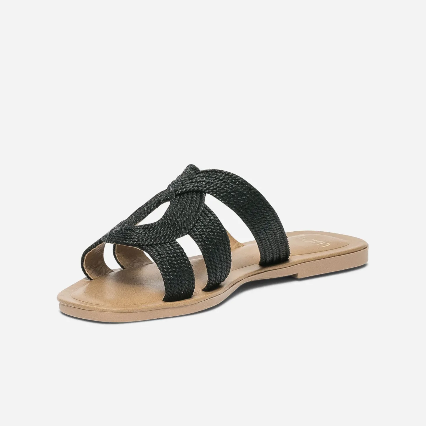 Sublimer le pied, le bronzage de l’été, les tenues légères et raffinées. Voilà la promesse de cette mule pour femme. En textile noir, elle présente 3 brides tressées, jointes par un bel entrelac sur le dessus. Un modèle facile à porter, avec toutes les couleurs de la palette estivale.