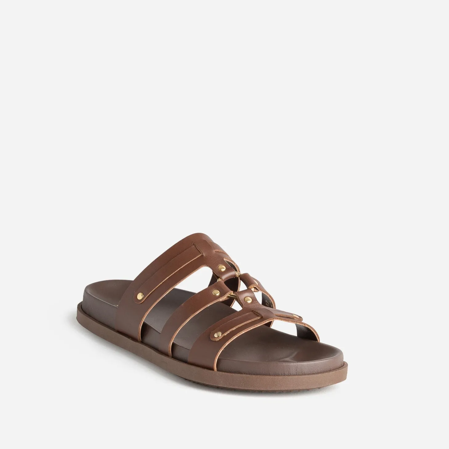 Mule TEXTO marron cuir décor clous