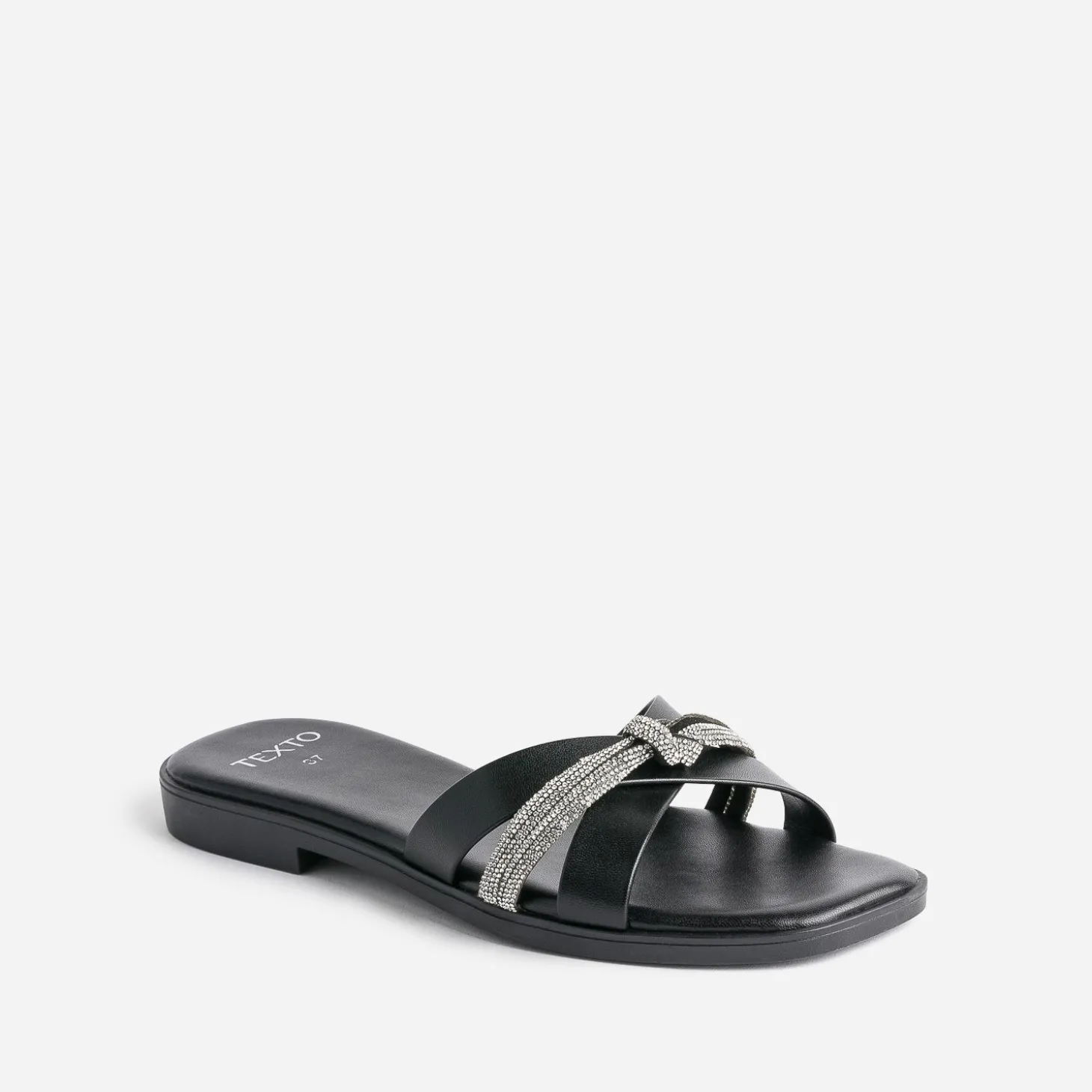 Mule TEXTO noire avec bride strassée
