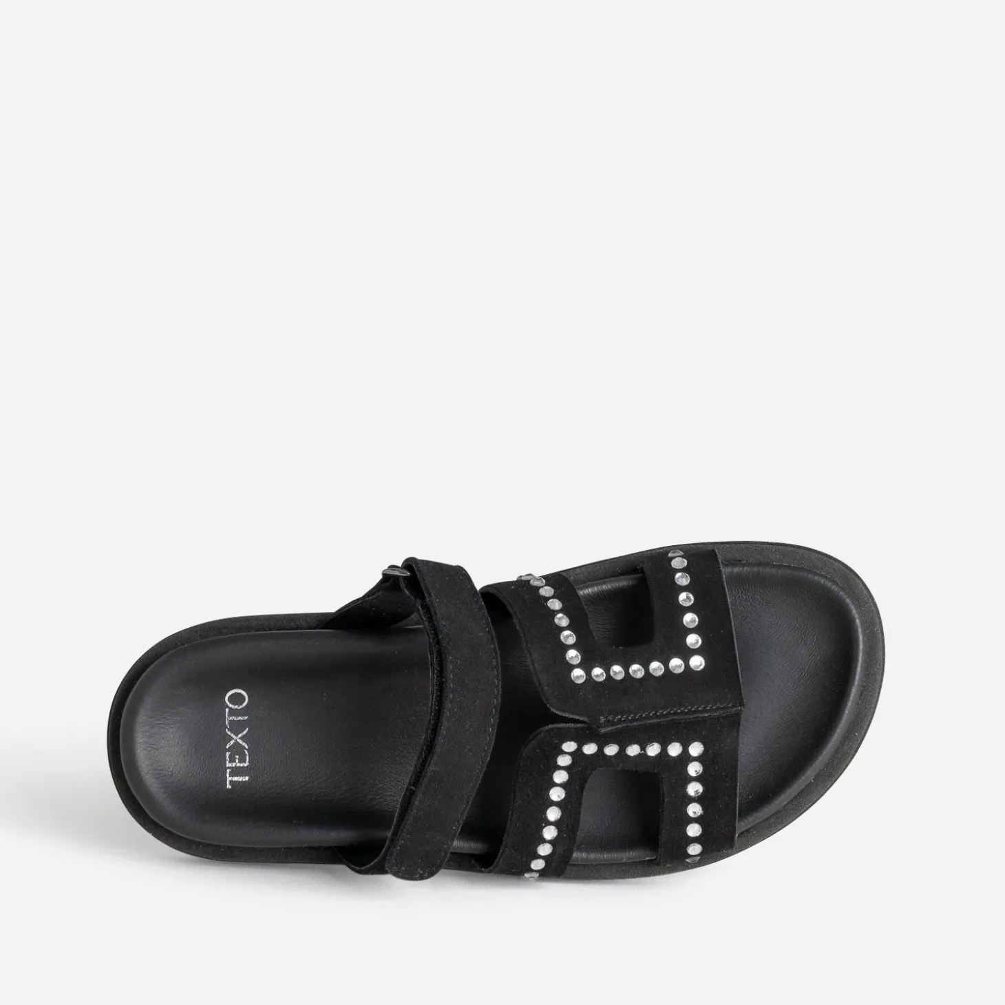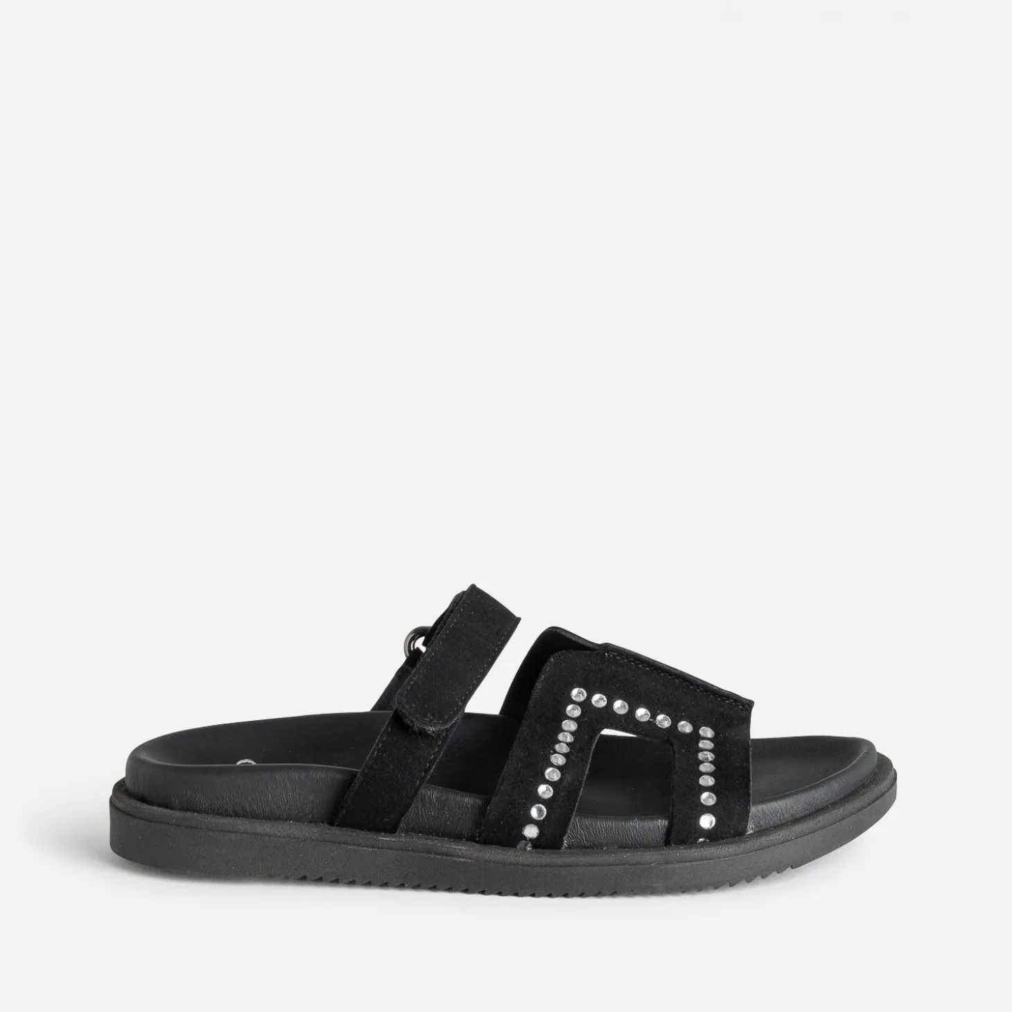 Mule TEXTO noire cuir velours décor strass