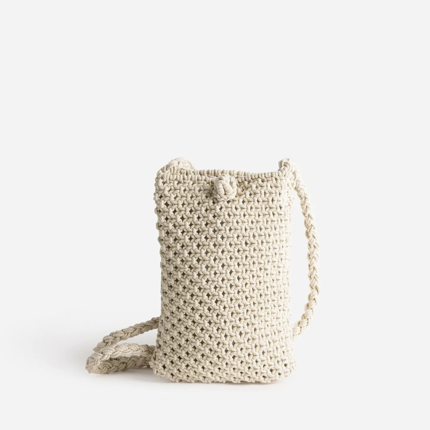 Pochette à téléphone TEXTO beige en macramé