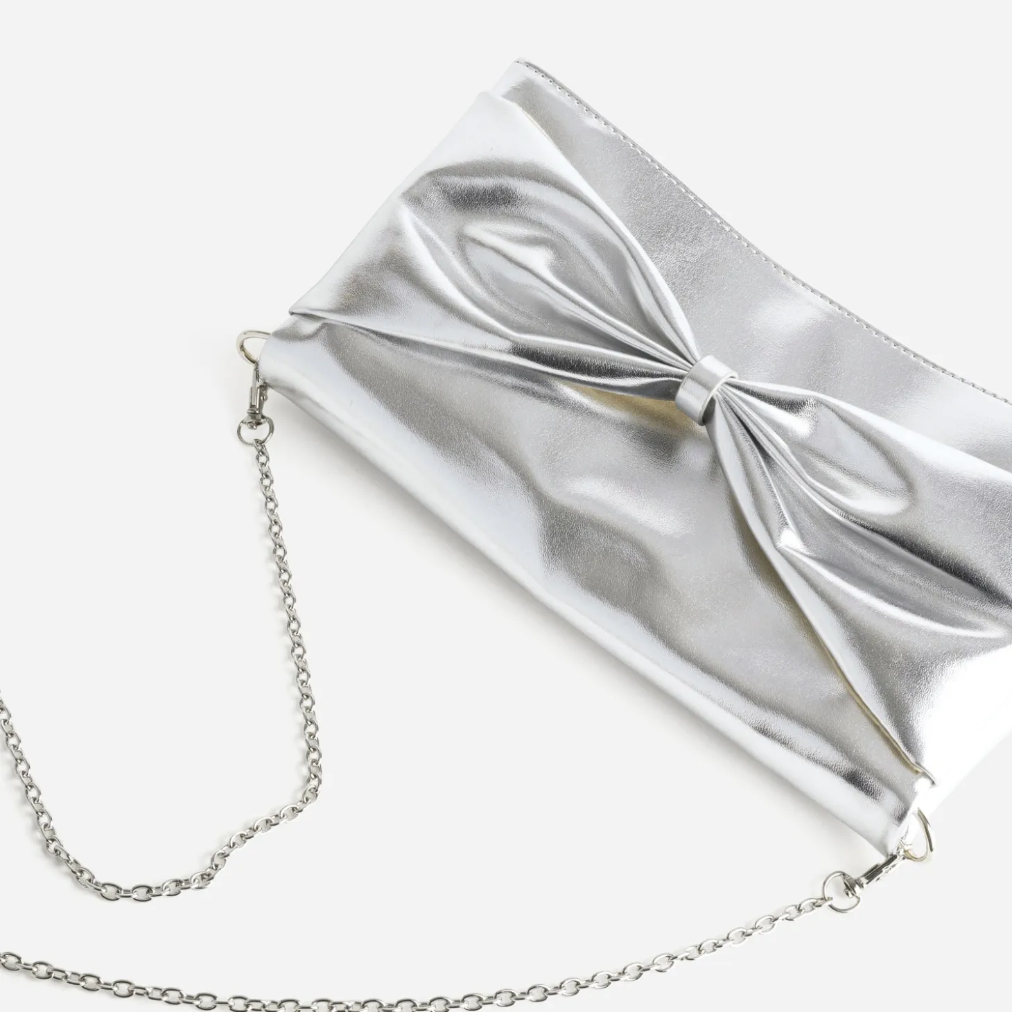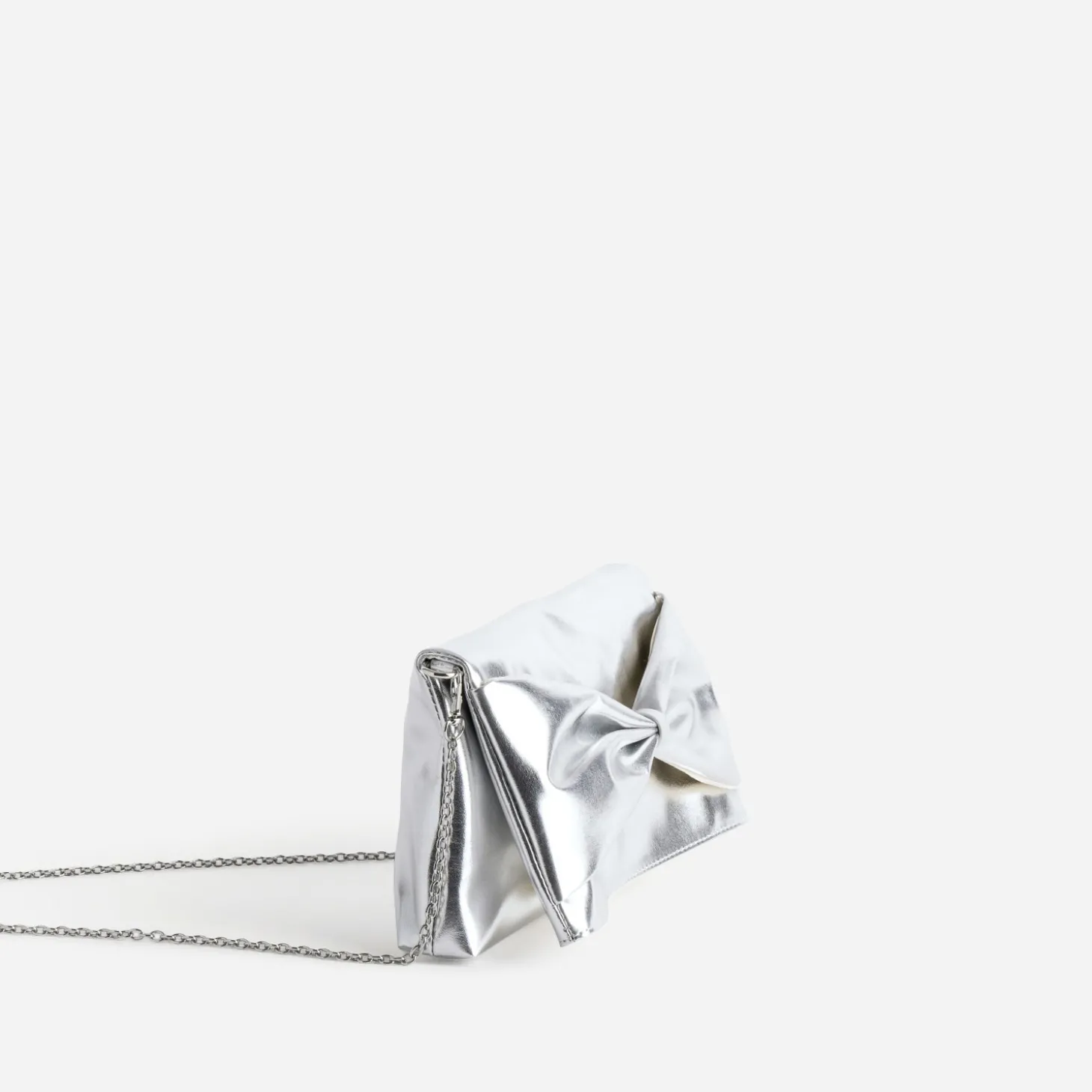 La robe chic, longue, vaporeuse, que l’on aime sortir pour les grandes occasions, mérite une accessoirisation à la hauteur de son élégance. Faites le choix d’un sac de petit format. En matière synthétique lisse, la pochette s’offre un coloris gris argenté. Rectangulaire, elle est dotée d’un maxi nœud sur le devant, pour y glisser la main. Vous préférez un porté sur l’épaule ou croisé sur le buste ? Privilégiez la fine bandoulière amovible façon chaînette en métal gris. Un accessoire très mode, à réserver avec des tons pastel et froids, bleu ciel, vert d’eau, parme.