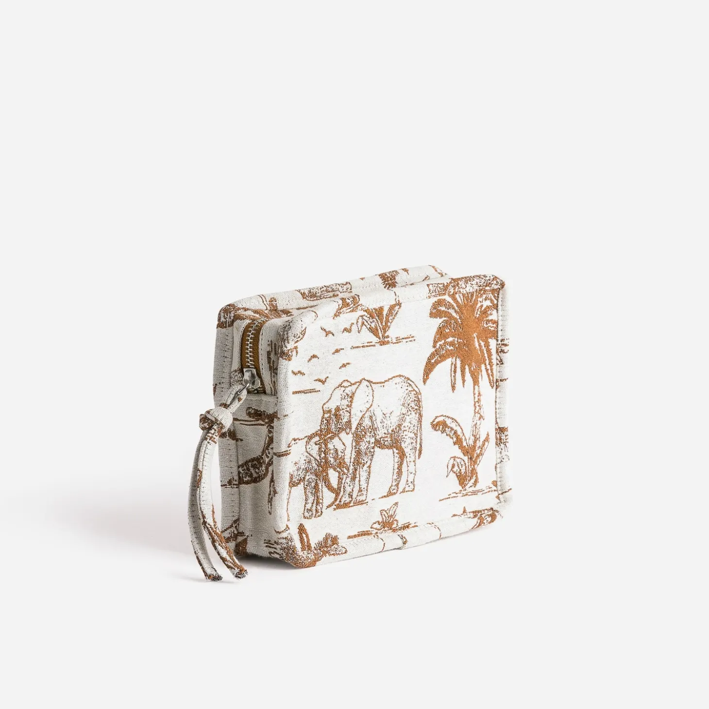 Pochette camel jacquard à motif éléphants