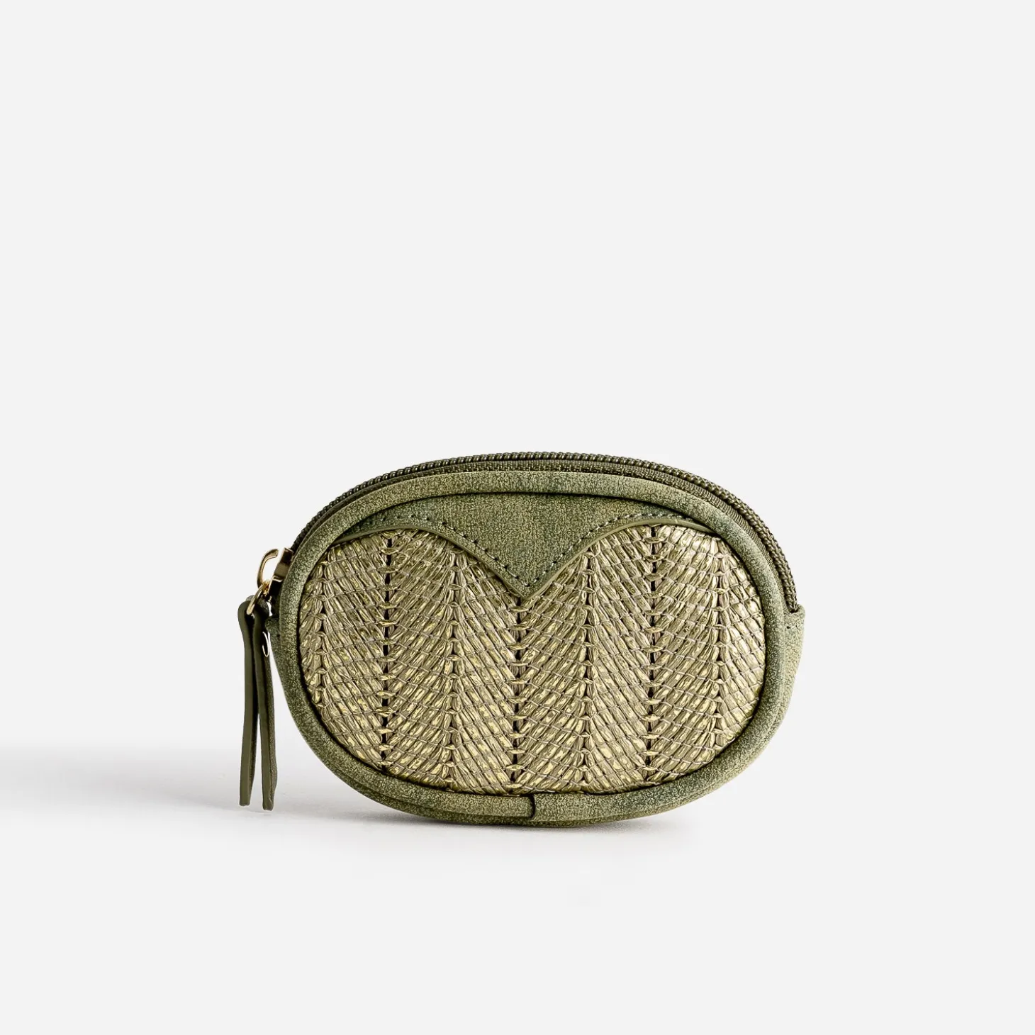 Porte-monnaie kaki avec tressage doré