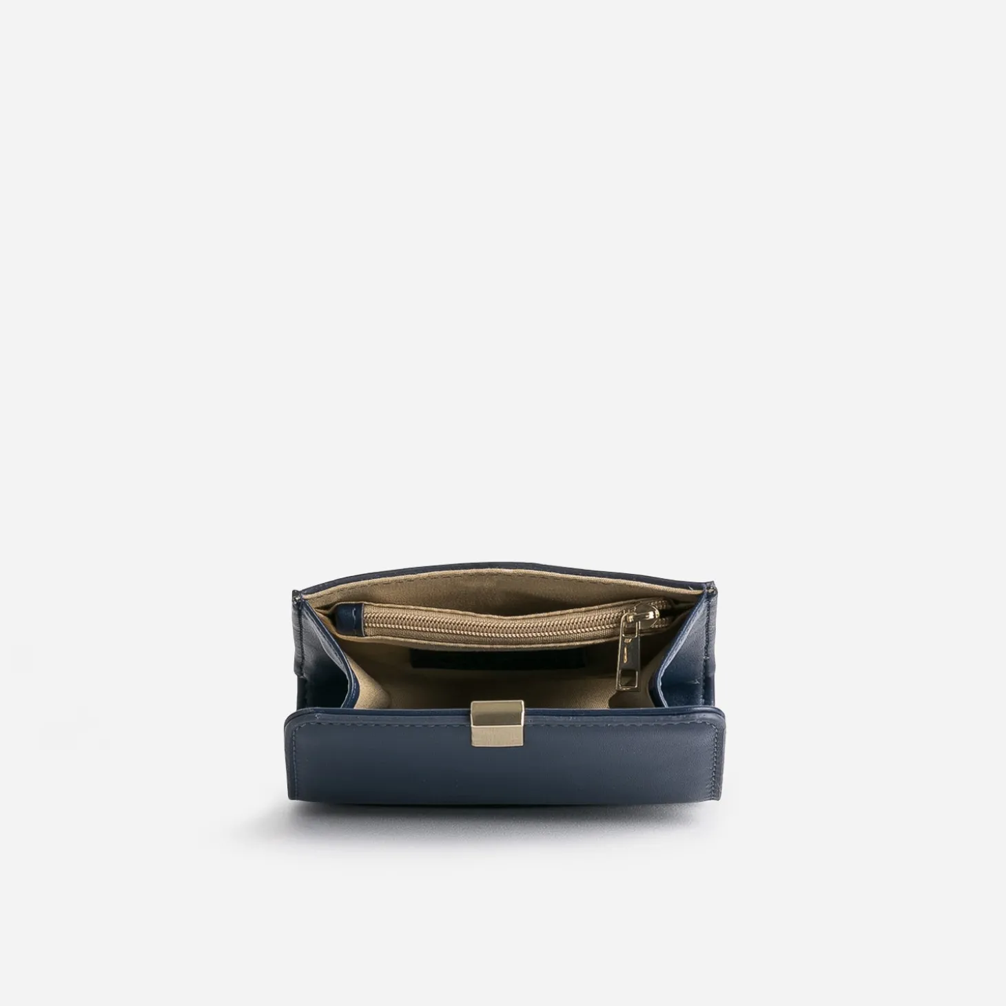 Ne vous fiez pas à son petit format. Poche zippée interne, poche plaquée externe, fentes pour cartes, ce porte-monnaie prend son rôle à cœur. En matière synthétique lisse, il se décline en coloris marine, sobre et intemporel.