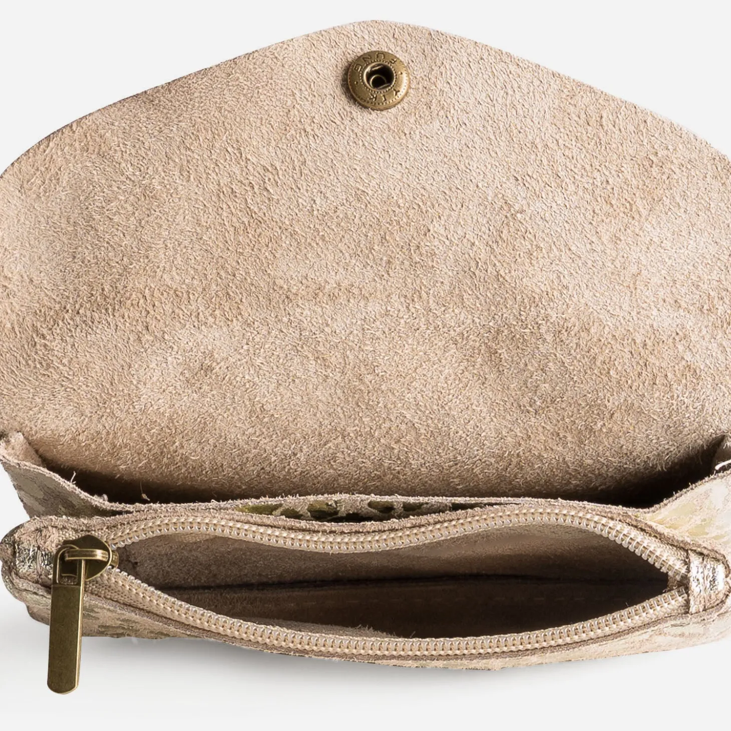 Porte-monnaie TEXTO beige cuir velours motif doré