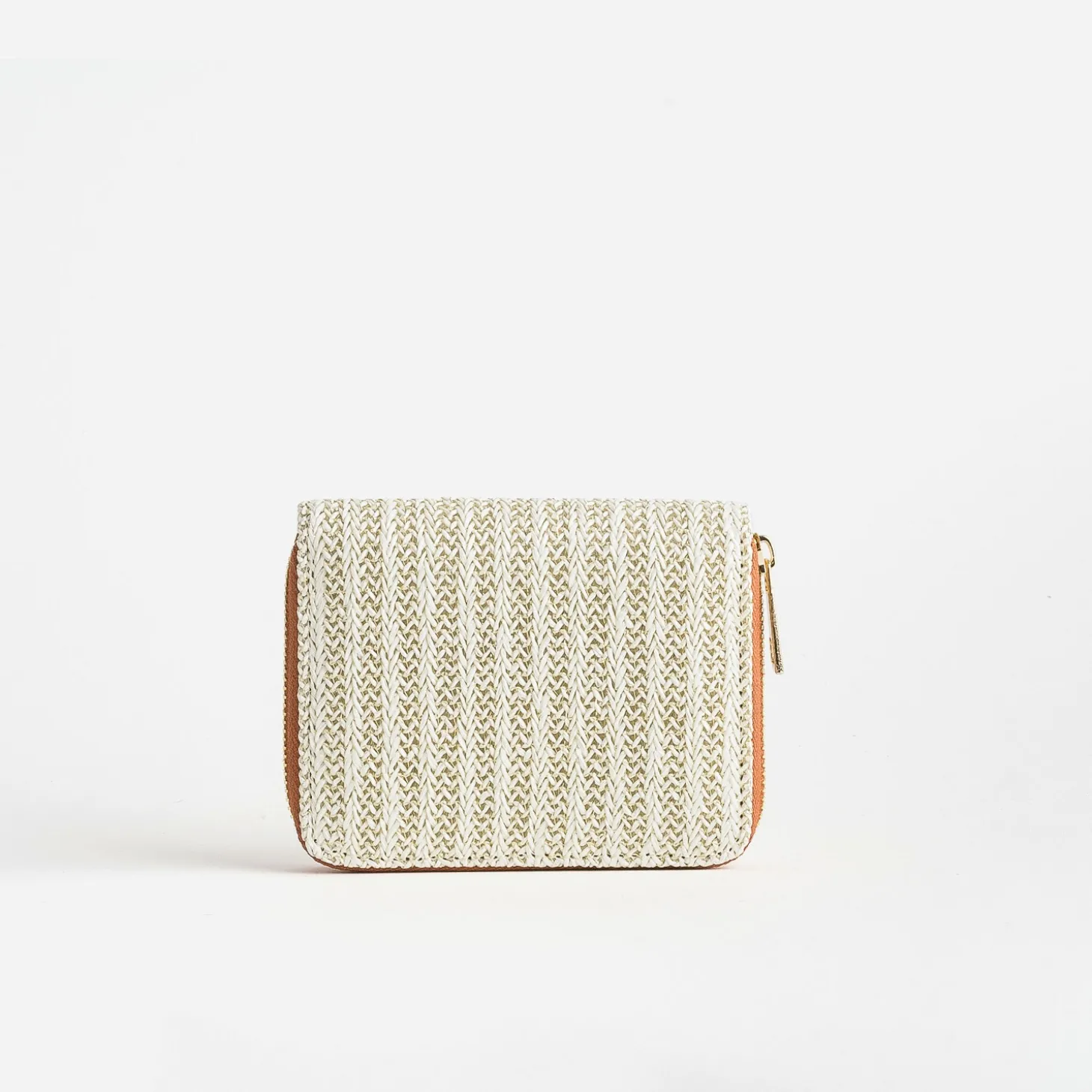 Jeu de tressage beige et doré d’inspiration bohème, pour ce petit portefeuille femme. A l’intérieur, twisté de camel, monnaie et cartes trouvent place dans des compartiments étudiés. Un accessoire à garder à portée de main, dans son sac.