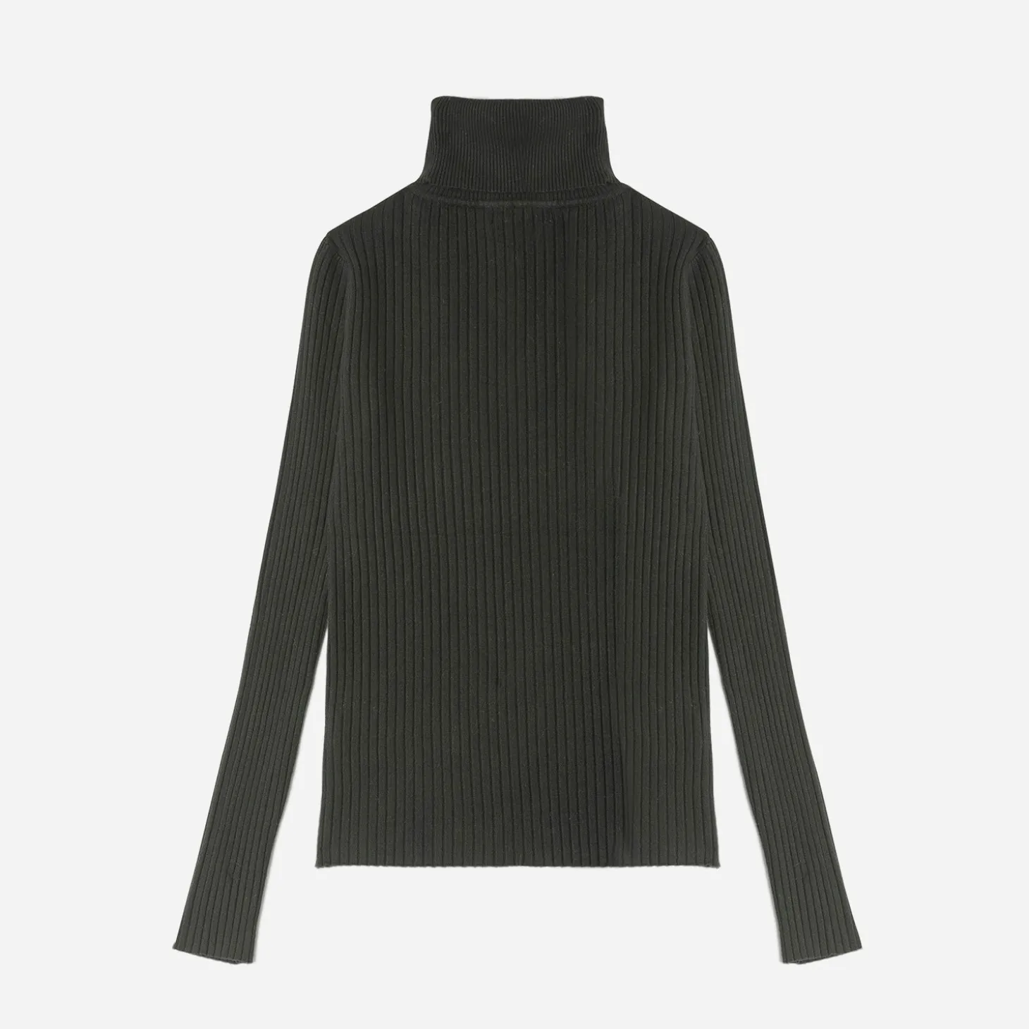 Coupe droite, col roulé, manches longues, bord-côte 1×1 au col