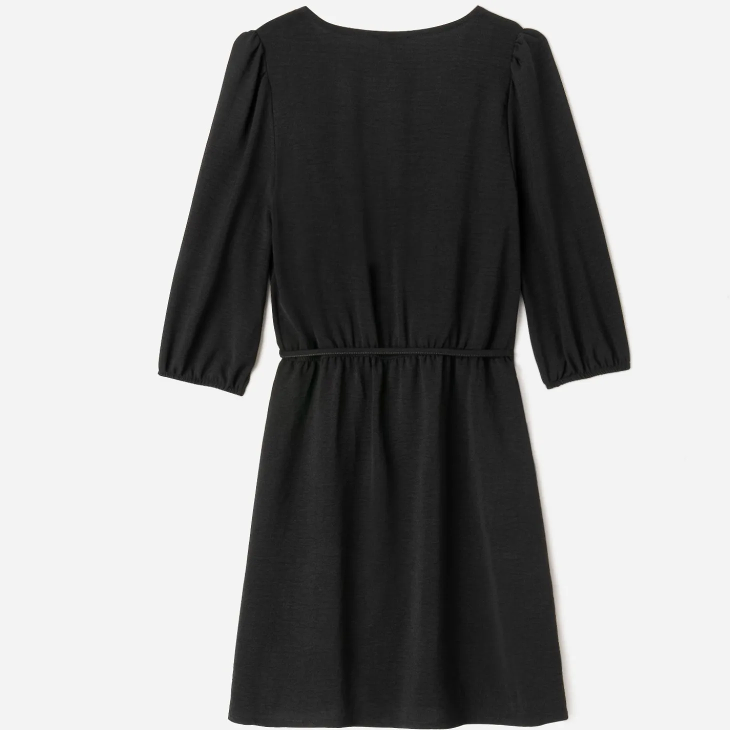 N’attendez pas l’effervescence de la fin d’année, pour oser la petite robe noire ! Courte, elle séduit par son tissu léger légèrement froissé et son décolleté en V, sublimé par un effet cache-cœur. Les manches 3/4 sont élastiquées et 2 passants accueillent une fine ceinture assortie amovible. L’heure de sortir vos talons, babies ou escarpins, boots ou boots, à sonner !