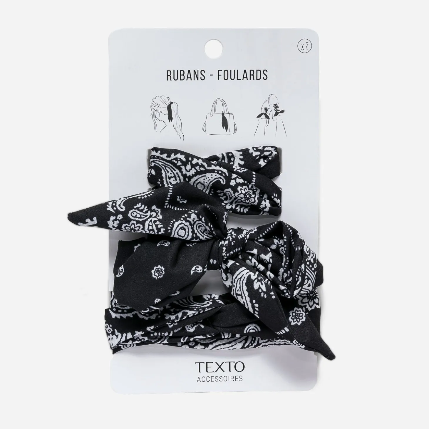 Rubans-foulards TEXTO noirs imprimé cachemire