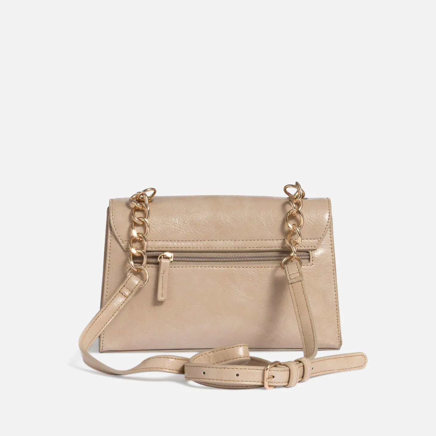 C’est l’accessoire parfait pour transformer instantanément un look simple en une tenue raffinée. Forme trapèze sur design rigide, ce sac à main femme, en matière synthétique beige, est sublimé par des métalleries dorées, et notamment les maxi chaînes sur la bandoulière ; une bandoulière bi matière réglable et amovible, qui permet d’adapter les portés. Imaginez-le avec un total look rose pâle esprit baby doll.