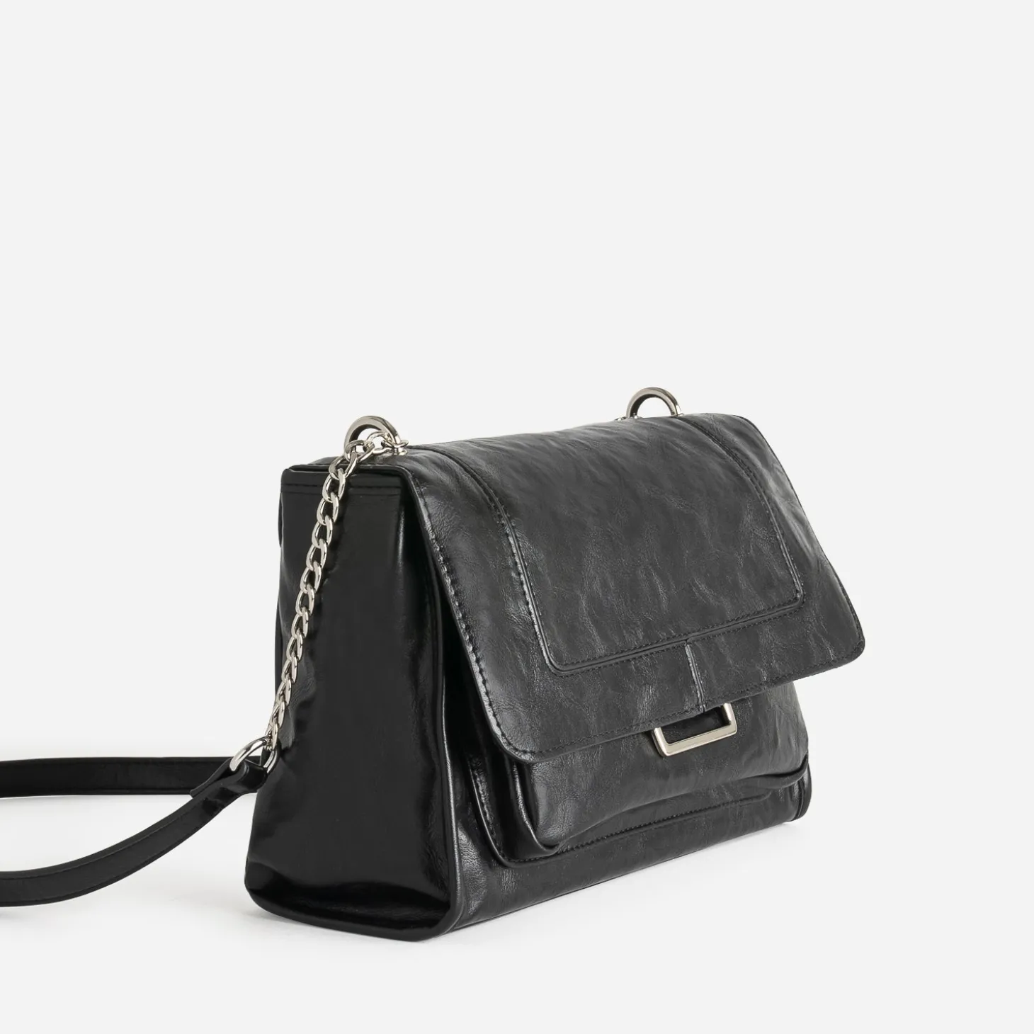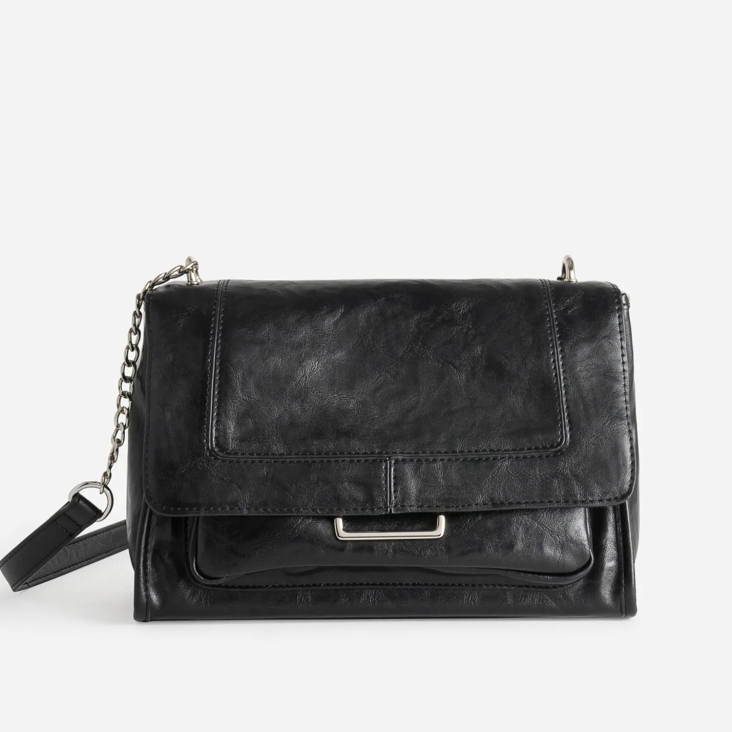 Effet patiné et finition glacée pour ce sac à main noir pour femme. Sa matière synthétique séduit par son incroyable souplesse et sa douceur au toucher et les métalleries argentées apportent une touche rock maîtrisée. A l’intérieur, le compartiment principal est doté de 2 poches internes, dont 1 zippée, et d’1 poche externe. Son format, ni trop petit ni trop grand, est idéal pour le quotidien. Un modèle qui s’adapte à votre uniforme du moment : blazer, jean slim enduit, boots à talon.