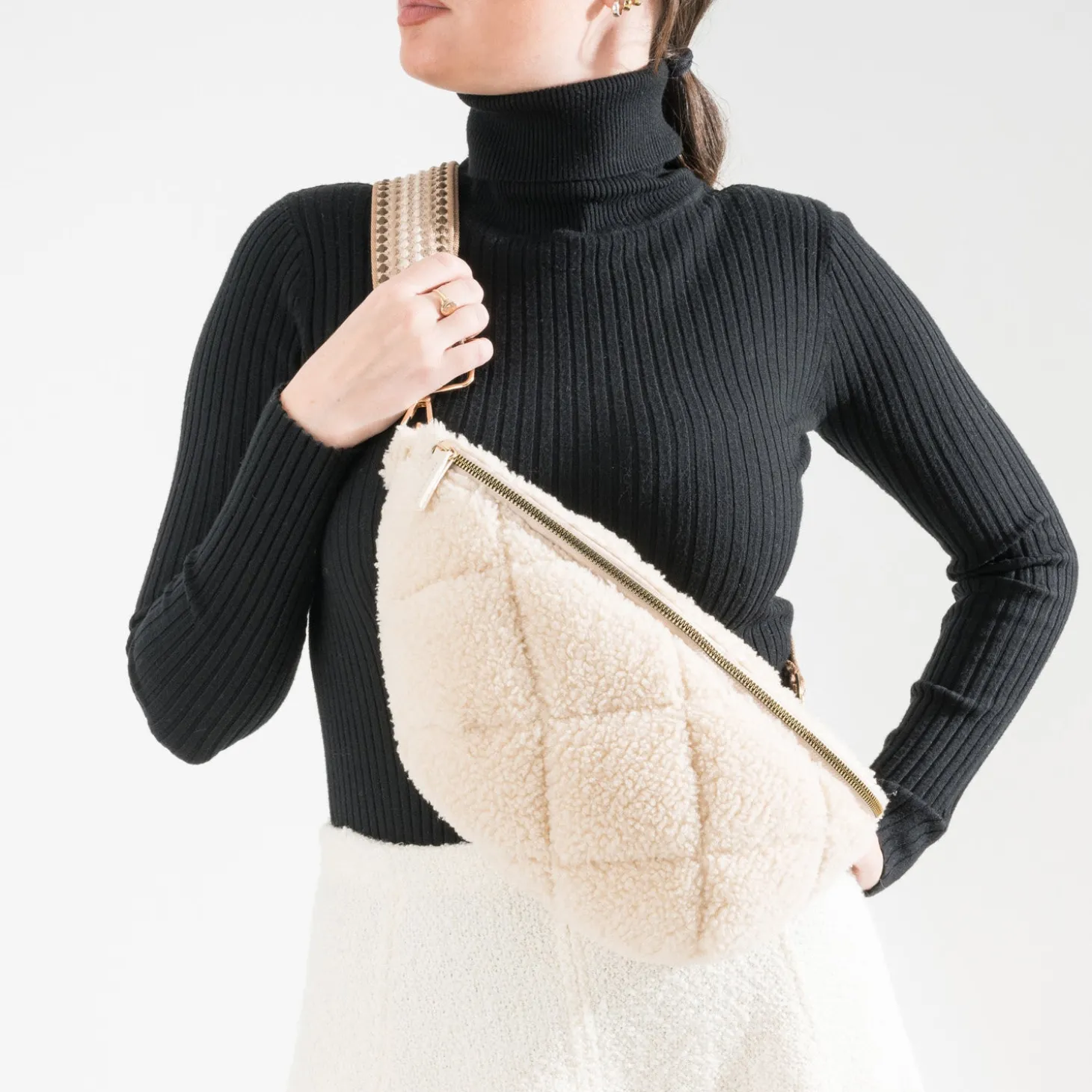 Sac banane écru sherpa bouclette