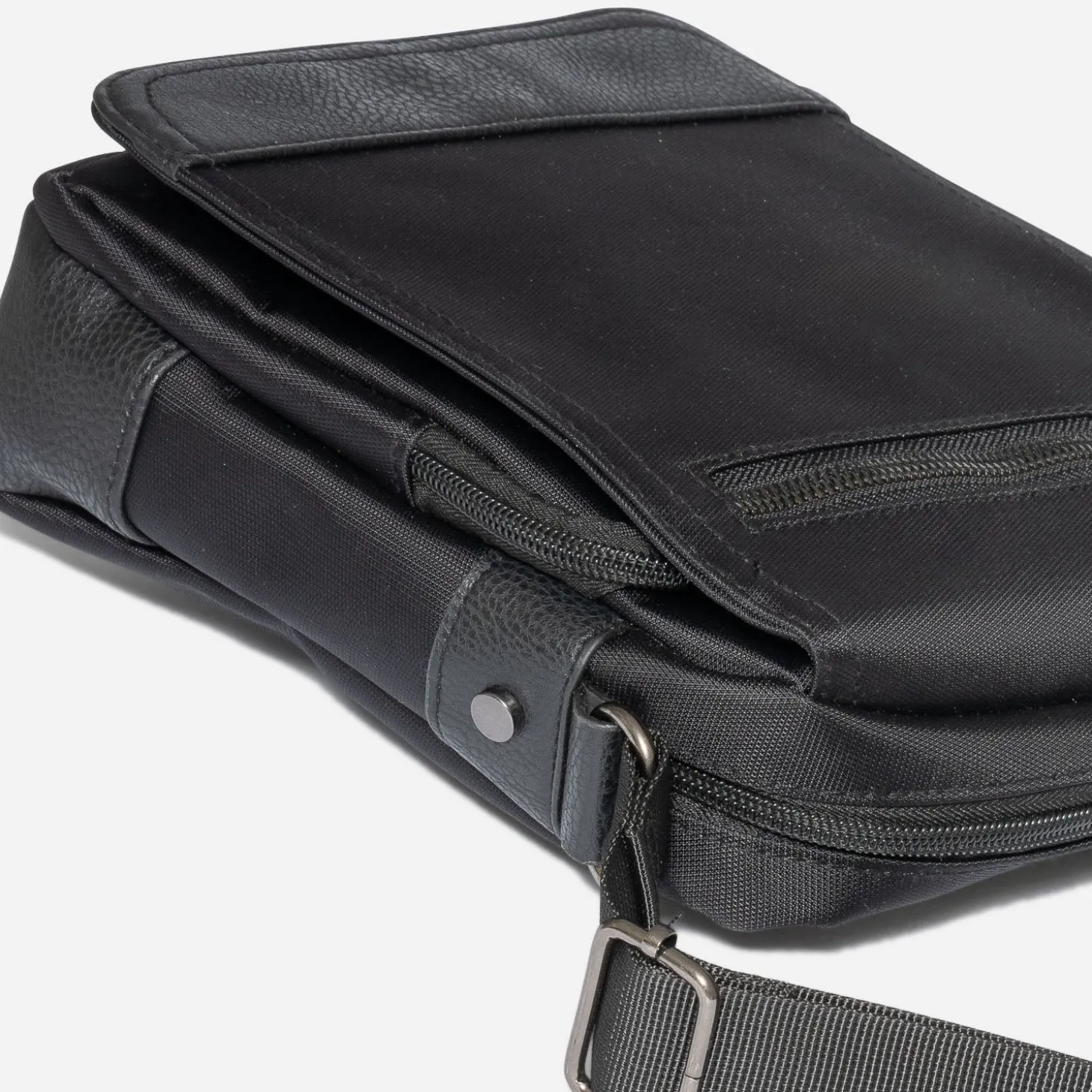 Ce sac à bandoulière noir vous accompagnera au quotidien ! On aime ses multiples poches zippées, dont une cachée sous son rabat. Ses empiècements en similicuir noir effet grainé rajoutent une touche de style au modèle. Pratique et élégant, il s’associe à toutes les tenues !