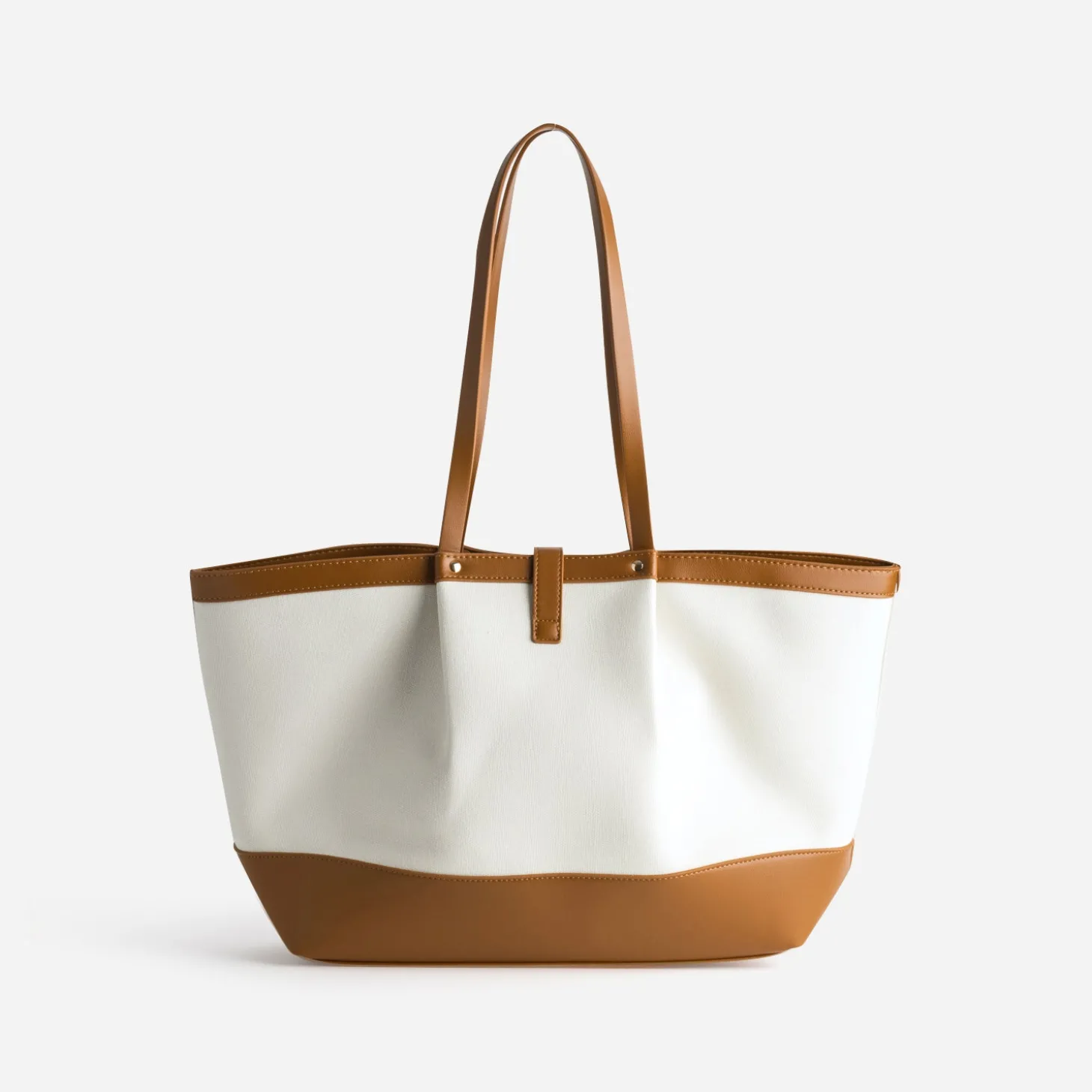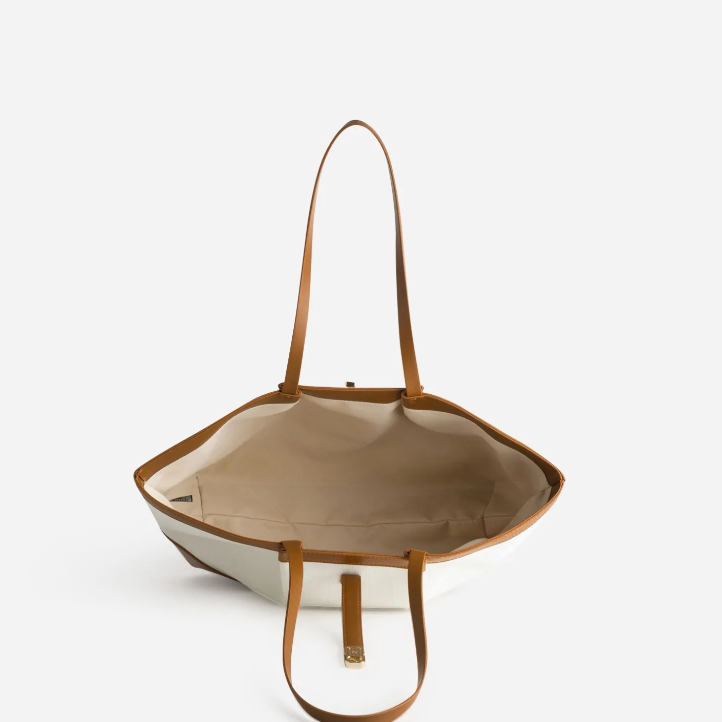 Sac cabas beige toile bi-matière cognac