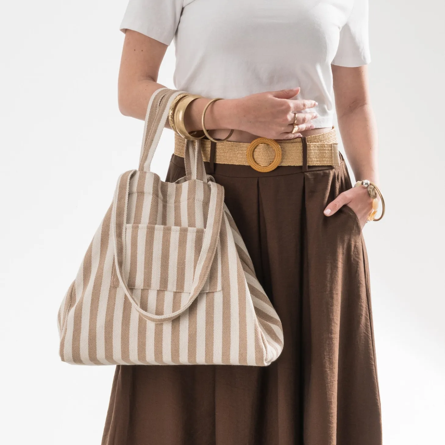 Sac cabas écru rayures beiges