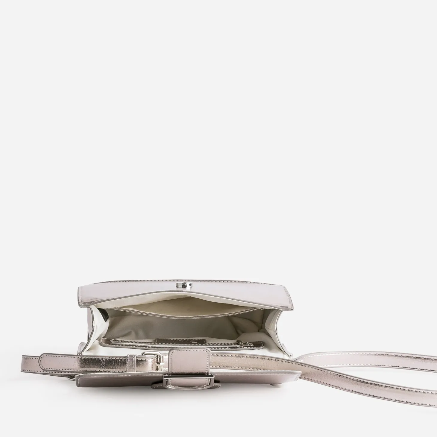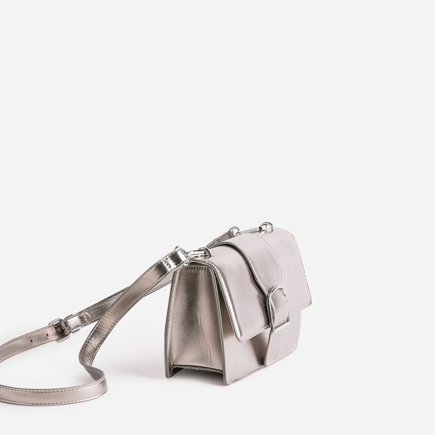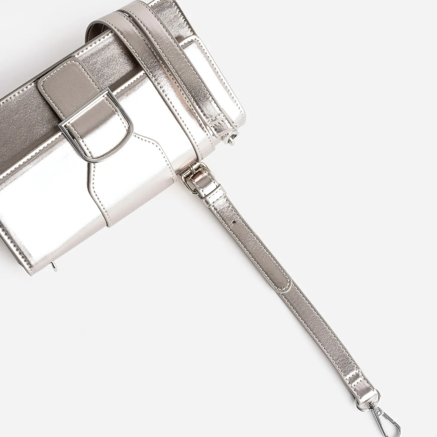 Avis aux fans du gris et de la brillance, le coloris argenté est, à l’évidence, votre couleur préférée. C’est aussi celle choisie pour mettre en valeur ce sac à main pour femme. Dessiné dans un format rectangulaire et rigide, il est confectionné dans une matière synthétique métallisée. Le rabat est, lui, décoré d’une large bride décorative avec boucle fantaisie. C’est l’accessoire indispensable pour finaliser vos looks, avec un style sobre et raffiné, parfaitement étudié.
