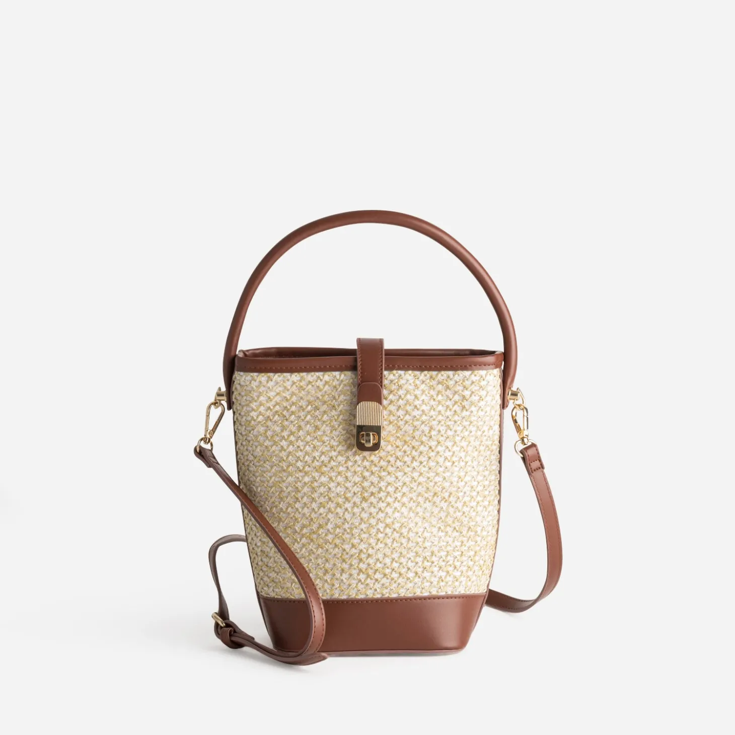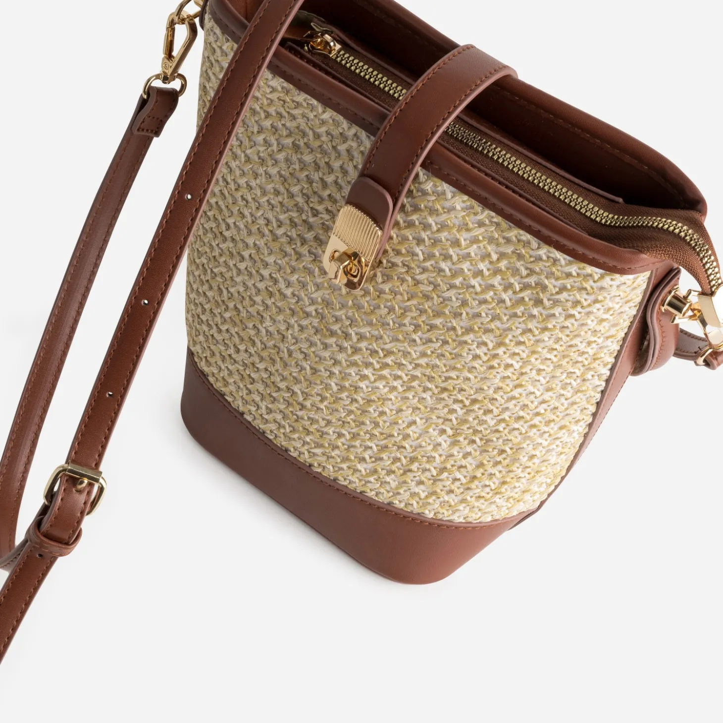 Sac seau beige paille papier et camel
