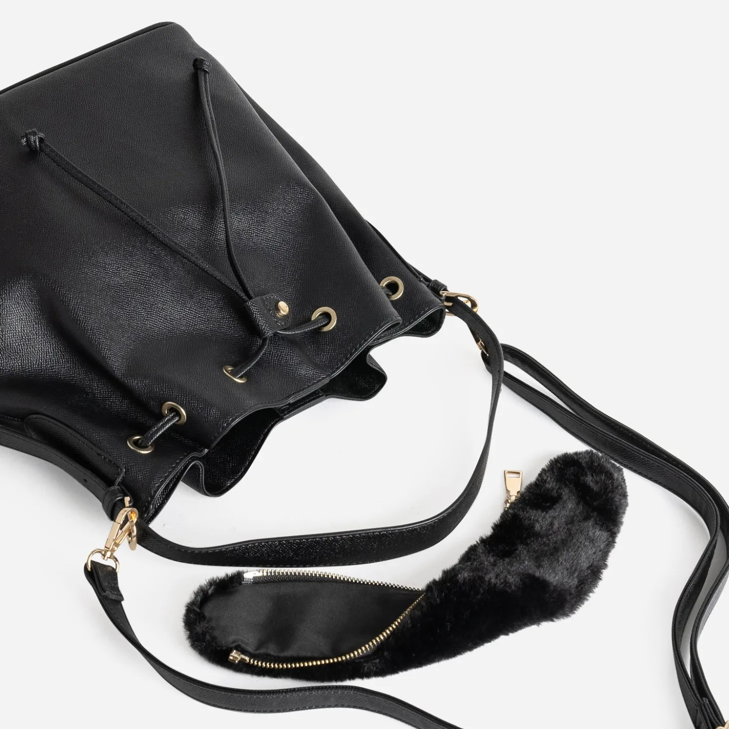 Grand volume recommandé pour ce sac à main femme. Sa forme seau est, elle, reconnaissable à sa fermeture par lien coulissé et curseur bloquant. En matière synthétique noire, il se porte à l’envi, sur l’épaule, court ou long, ou croisé sur le buste, grâce à deux bandoulières amovibles, dont l’une avec patte de maintien zippée. Un accessoire facile à accorder, avec un look raffiné comme plus décontracté.