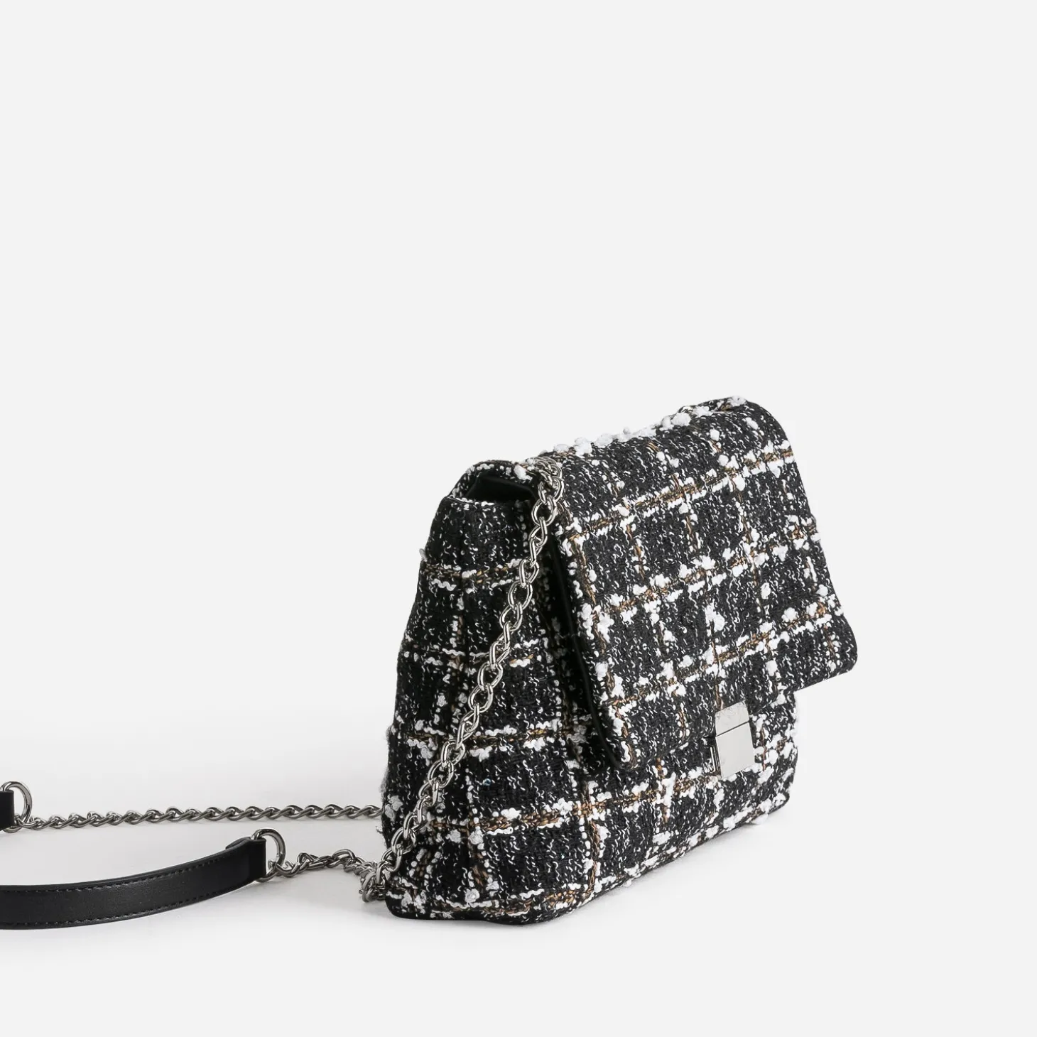 L’esprit Couture sublime l’allure. La preuve, encore une fois, avec ce sac à main femme en textile façon tweed. Noir, écru et camel, il est rythmé d’un effet carreaux et de sequins brodés, sur une forme rectangulaire. Découvrez la bandoulière ajustable courte ou longue, grâce à un système de coulisse judicieux.