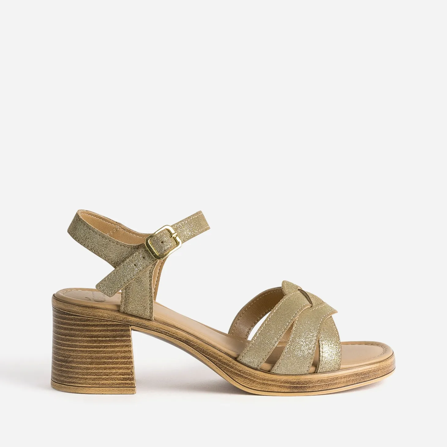 Vous rêvez d’un été qui rime avec confort ? Essayez cette sandale femme. Montée sur une semelle imitation bois, elle présente un talon large pour une parfaite stabilité. Les brides, confectionnées en cuir velours, se déclinent en coloris or vieilli, chic mais pas clinquant. Un modèle idéal pour la saison, avec toutes vos tenues, celles du quotidien comme les plus raffinées.