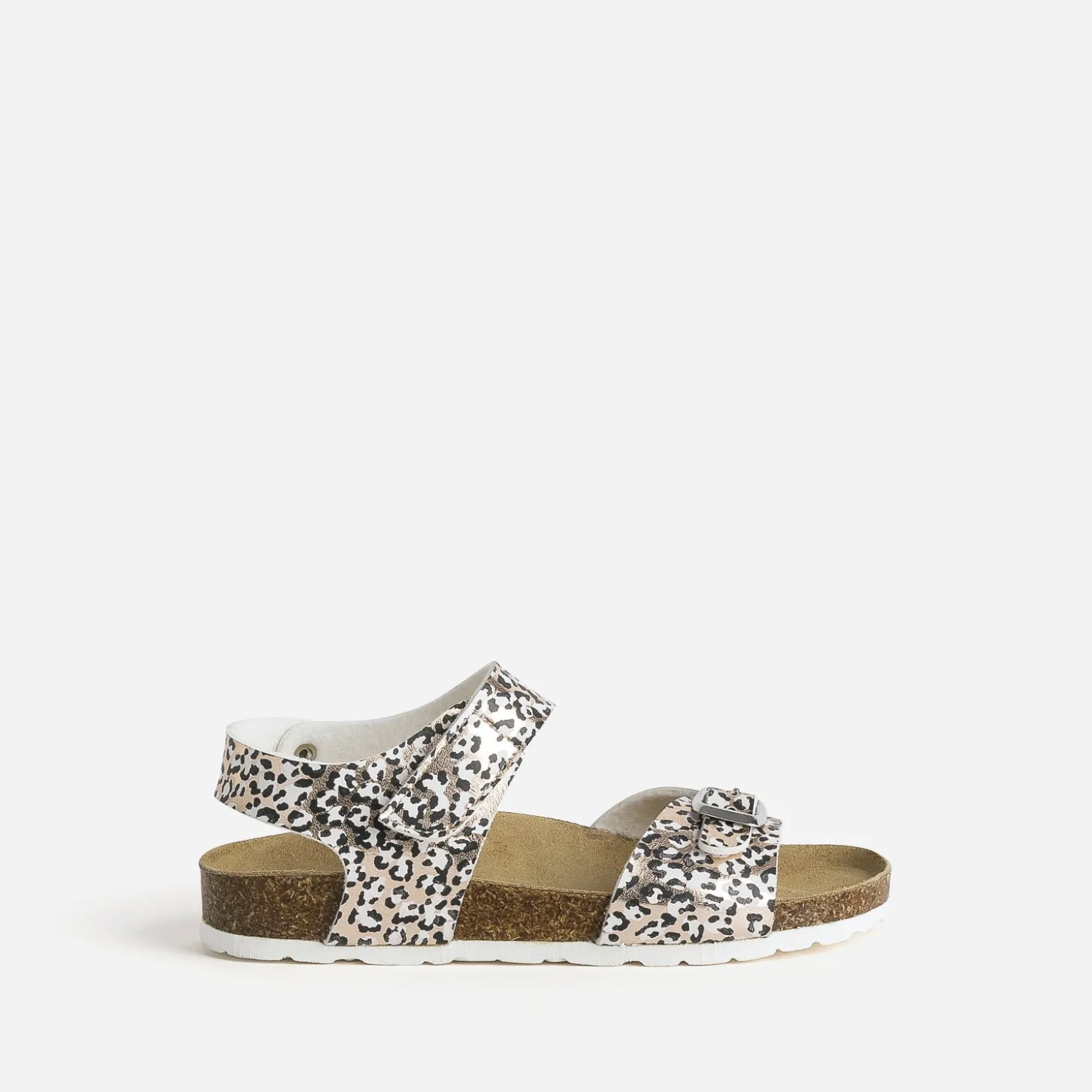 Parce qu’elle est montée sur une semelle anatomique en cuir velours ultra doux, cette sandale pour fille propose une nouvelle définition du confort. Les brides, en matière synthétique lisse, invitent un motif léopard très tendance, sur fond rose cuivré, et se ferment par boucle et scratch, pour un ajustement parfait. Total looks black, blanc ou beige, s’imposent en alliés tout l’été.