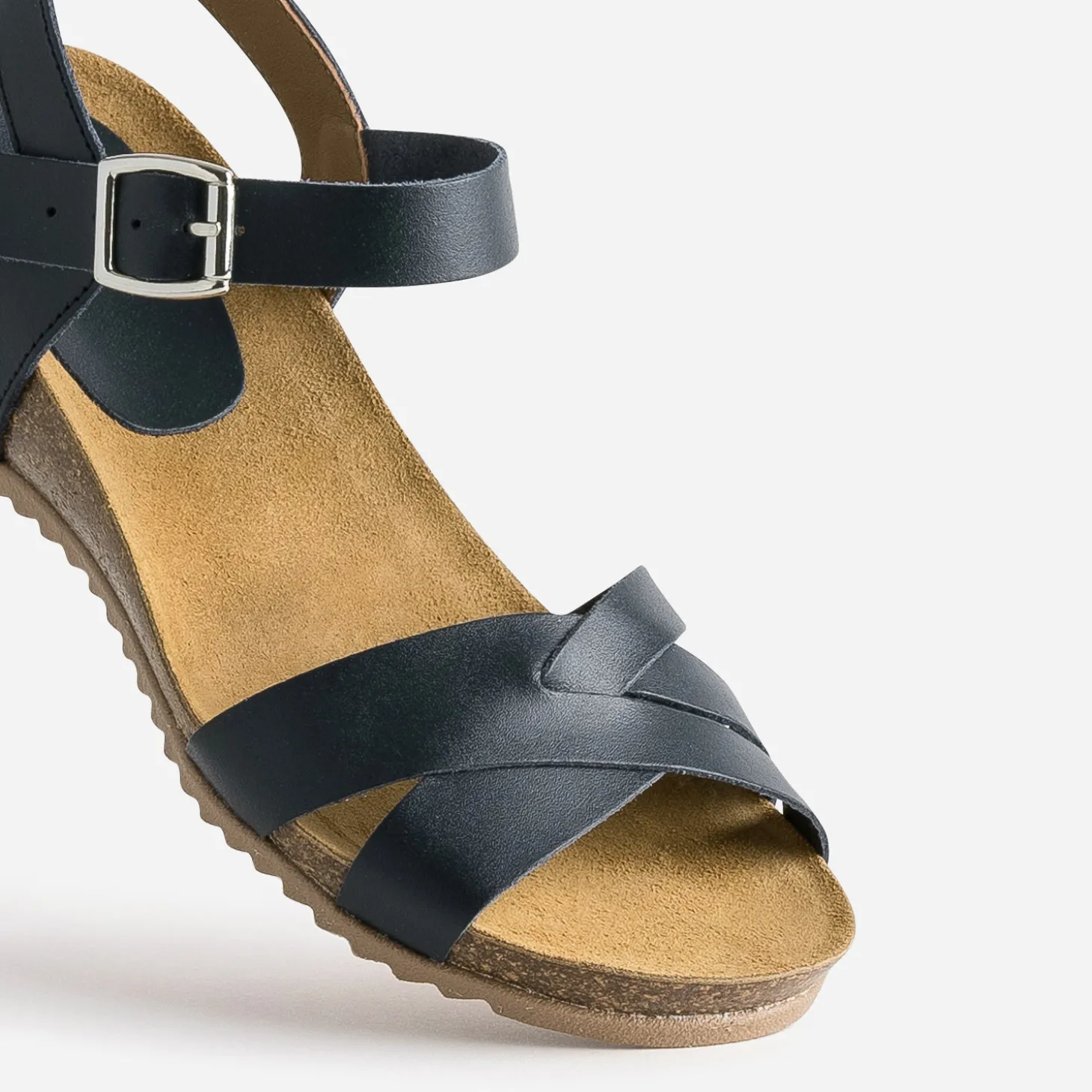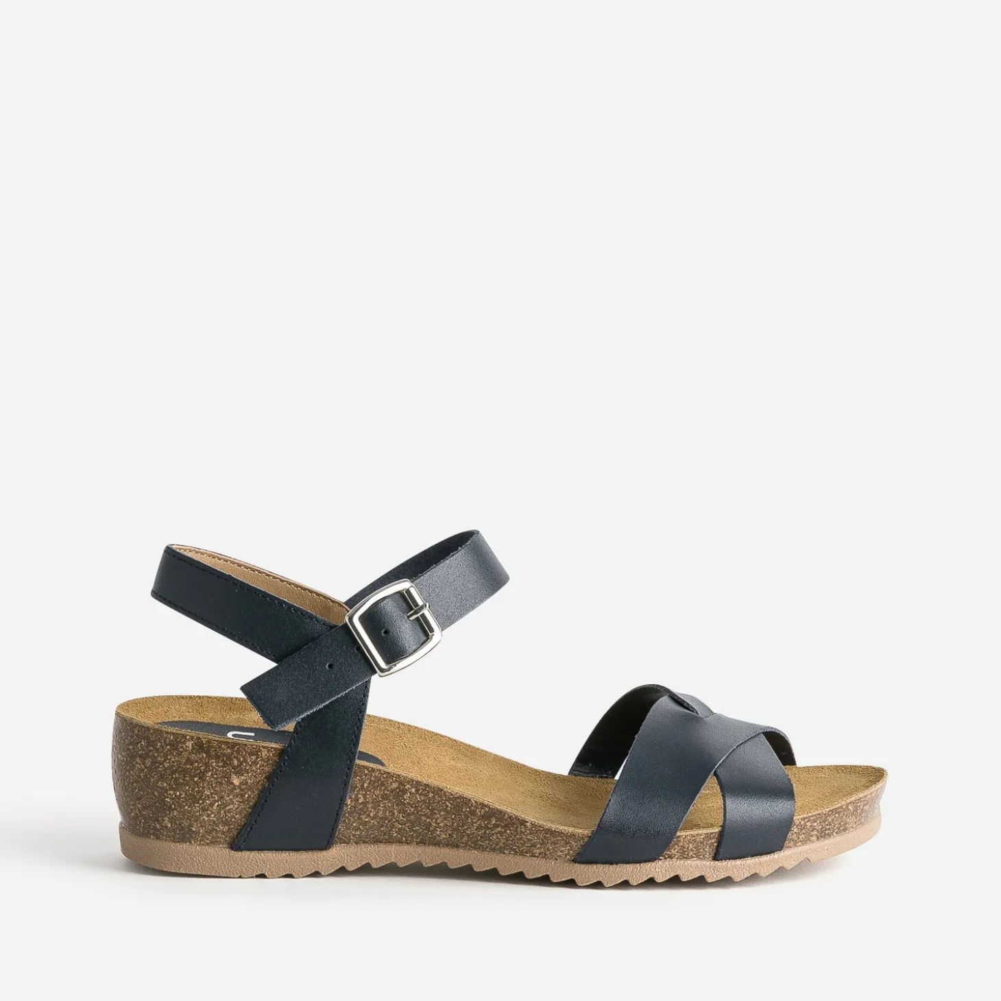 Un talon légèrement compensé, une première toute douce en cuir velours, des brides en cuir. Cette sandale pour femme ne veut qu’une chose, votre confort. Elle se décline en coloris marine, pour s’accorder à un maximum de tenues, à choisir de préférence, décontractées.