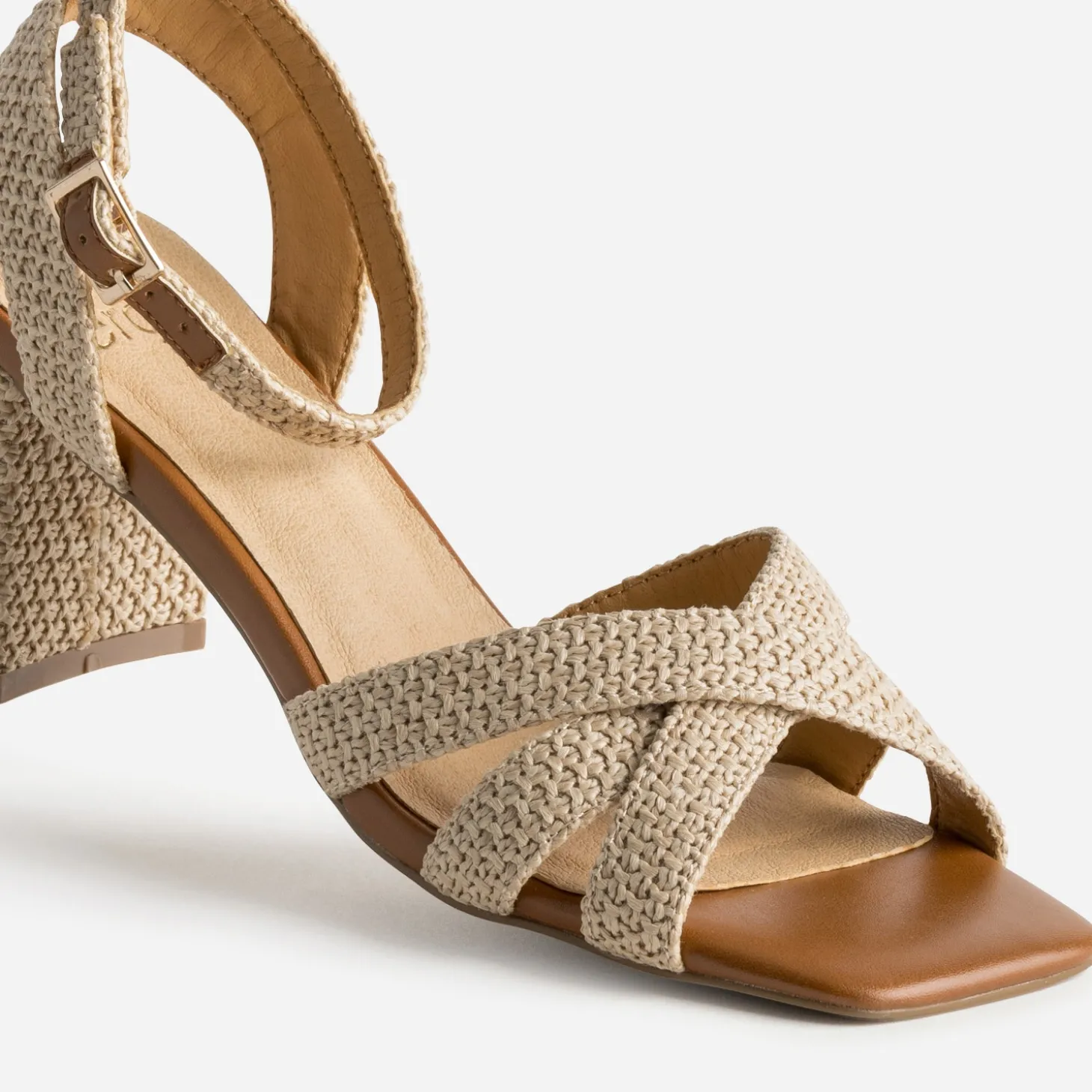 La sandale tressée ouvre le champ des possibles en matière de looks d’été. Beige, elle est soulignée de touches camel sur le bout carré et les bords de la semelle. Profitez de son talon carré et recouvert de 6,5 cm, idéal au quotidien. Un modèle à imaginer avec une chemise en jean bleu et un jean blanc 7/8e, en journée, ou avec une robe chemise en lin et un panier en guise de sac, en soirée.