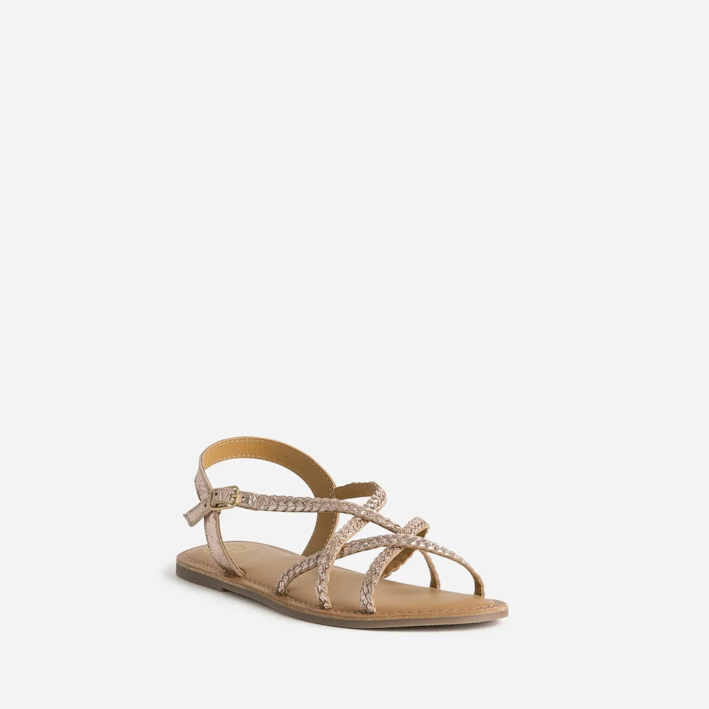 Coloris rose cuivré, finition métallisée, jeu de tresse maîtrisé : cette sandale plate pour junior fille est une valeur sûre, qui s’accorde à un maximum de looks de la saison. Avec une robe blanche pour une cérémonie, avec une combi-short en jean, avec une blouse et un pantalon chino rose fuchsia.