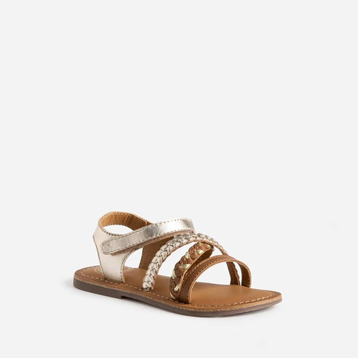 Camel et doré, c’est le combo parfait pour des sandales d’été. Brides tressées croisées sur le dessus du pied, bride à scratch autour de la cheville, elle mixe confort et style, avec juste le chic qu’il faut.