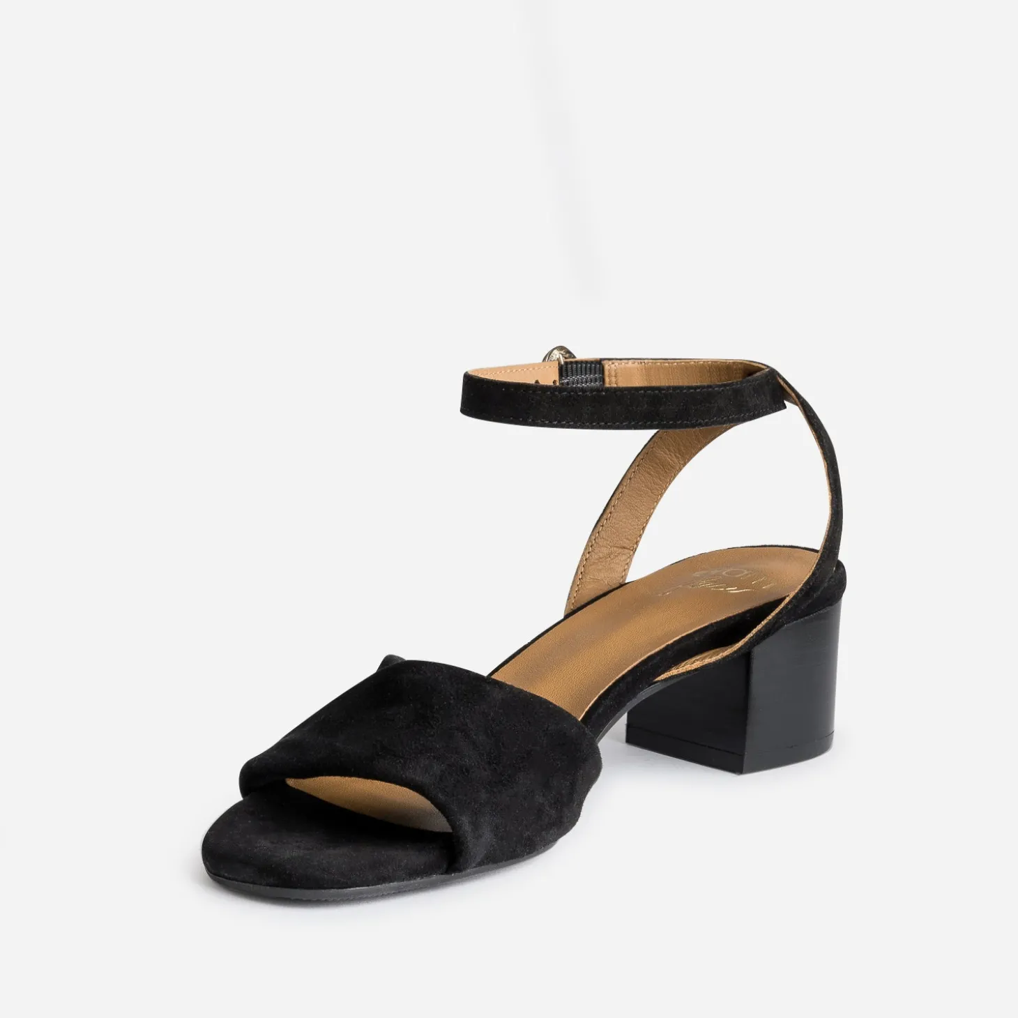 L’été donne envie de mettre plus en valeur les pieds. Par un cuir velours souple sur brides croisées, par un coloris noir intemporel, par un petit talon imitation bois de 4,5 cm. Cette sandale femme est la meilleure option, pour profiter des belles journées estivales. De plus, la semelle intérieure est moussée, reconnue pour ses propriétés d’amorti, de confort. Associez-la avec un look dans les tons de noir, camel ou doré.