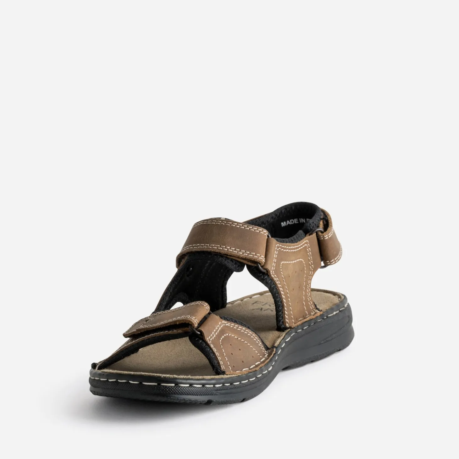 La sandale pour homme mise, elle aussi, sur un design étudié pour être confortable. Par une semelle première veloutée. Par des brides en cuir, doublé d’une matière nylon. Elle s’ajuste au pied par un système de scratchs. Un modèle facile à enfiler, avec une tenue décontractée.