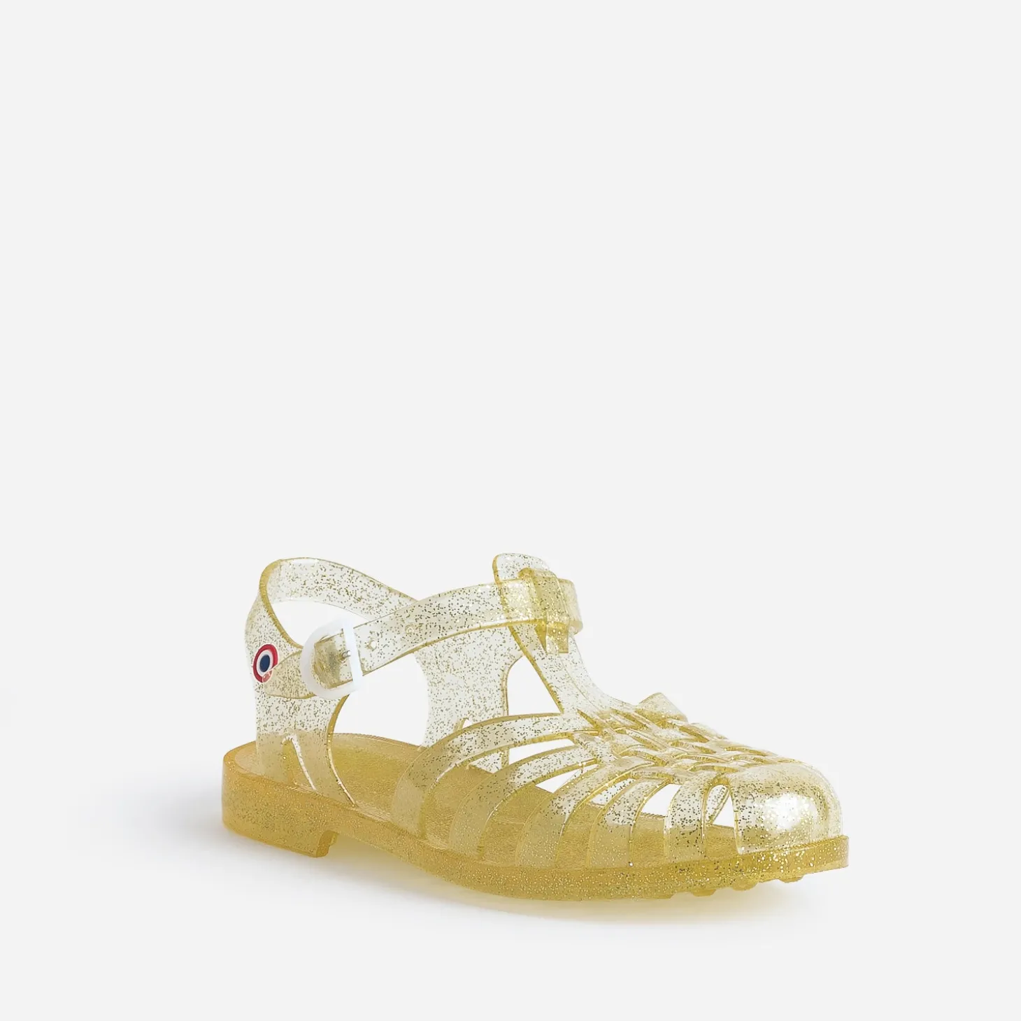 100% fabriquée en France, elle joue l’audace d’un coloris jaune, ponctuée de paillettes dorées et se ferme par une bride à boucle. Un modèle femme qui matche avec toutes les tenues d’été, du bitume jusqu’aux cocotiers !