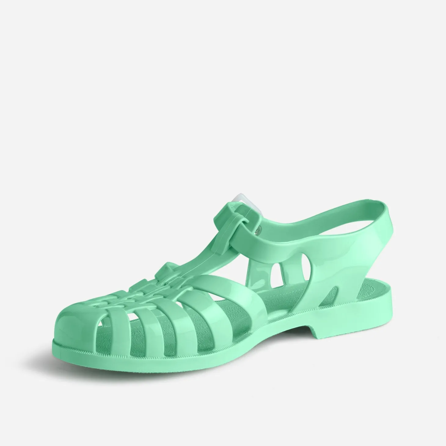 100% fabriquée en France, elle joue l’audace d’un coloris vert d’eau, très tendance, et se ferme par une bride à boucle. Un modèle femme qui matche avec toutes les tenues d’été, du bitume jusqu’aux cocotiers !