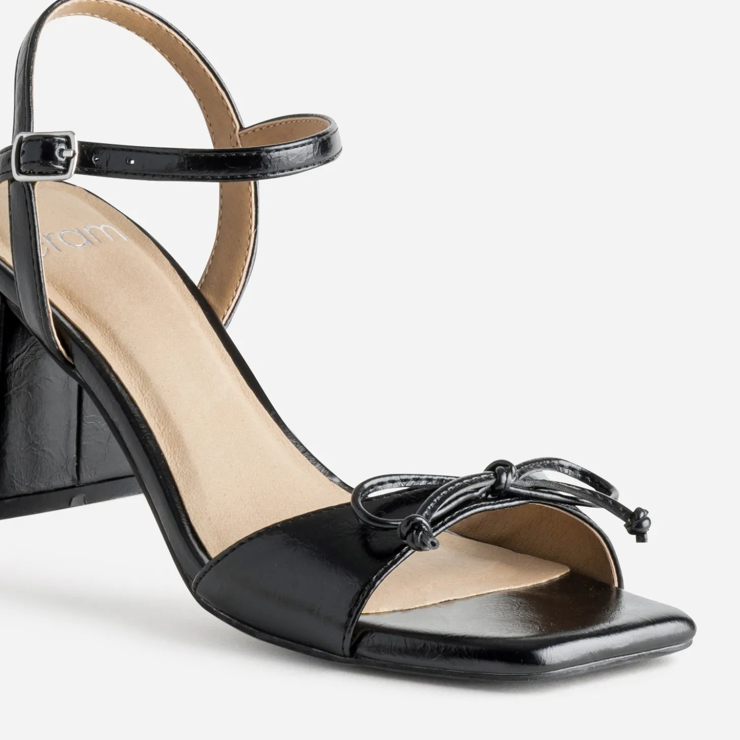 Romantique mood assumé pour la sandale femme. Intemporelle, elle se décline en coloris noir et revendique une modernité certaine, par un décor de nœud sur la bride avant, un bout carré et par un talon flare. Un modèle à imaginer avec une robe esprit pin-up à motif maxi pois.