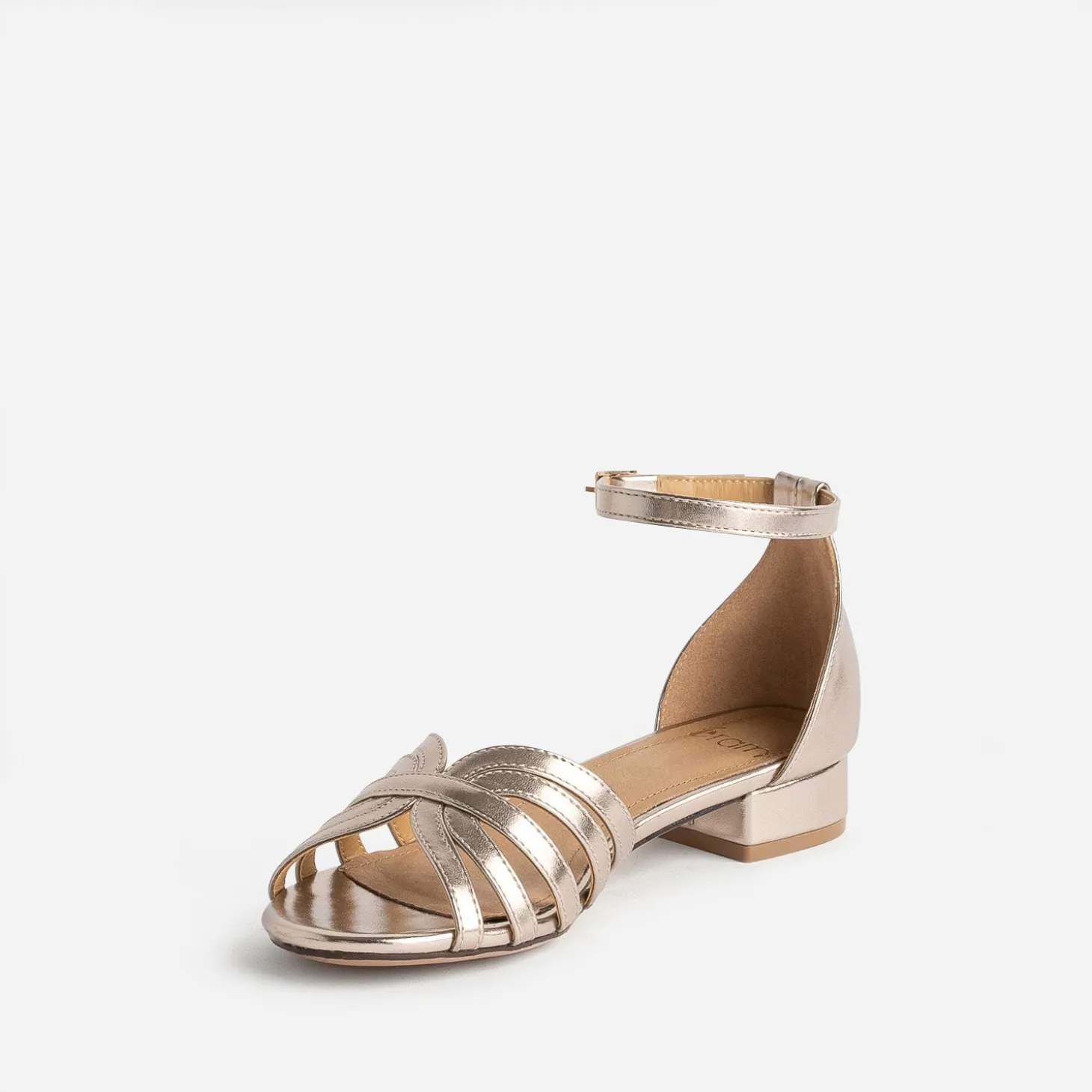 Revoir ses priorités, c’est, cet été, partir en quête d’une jolie sandale de couleur dorée. Petit talon, cheville maintenue, brides multiples, elle coche toutes les cases, pour matcher à la perfection, au quotidien comme lors de moments d’exception. Ne cherchez pas plus loin !