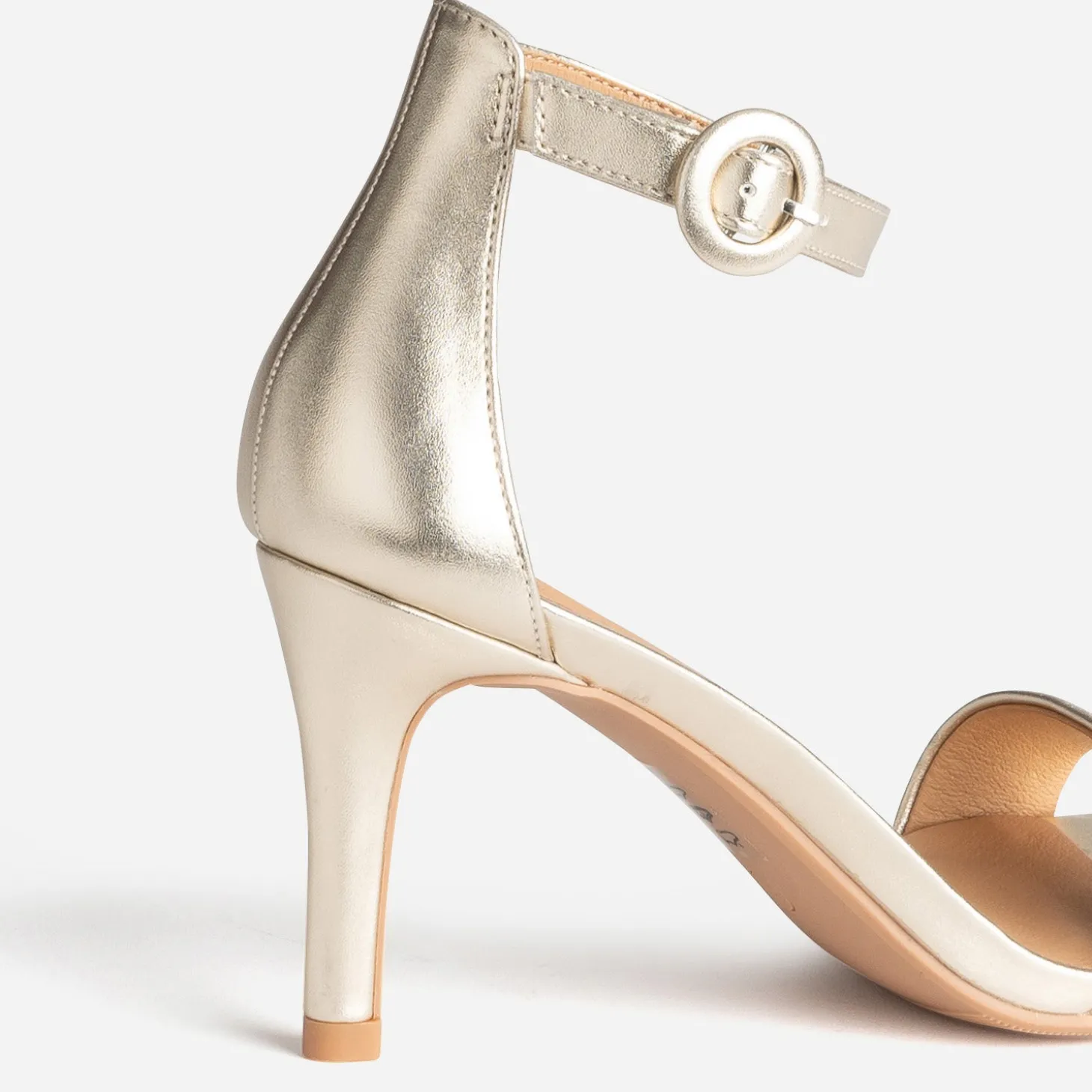 Il n’existe rien de plus féminin que la sandale à talon fin. En simili cuir, elle habille le pied d’une bride sur le dessus du pied et une tige montante sur l’arrière. Montée sur un talon fin de 8 cm, elle se décline en coloris or pour finaliser toutes les tenues d’été, en journée comme en soirée, avec une élégance évidente.