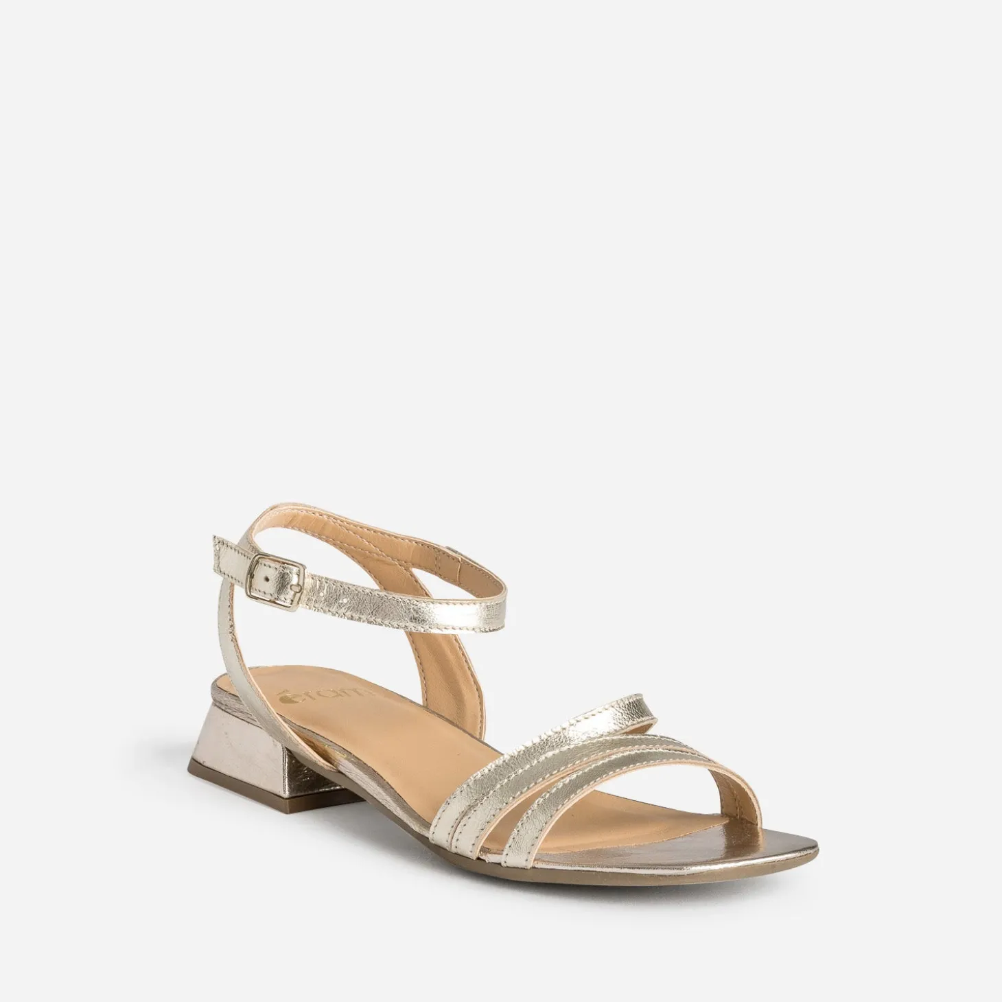 Champagne, platine. Appelez-le comme vous voulez. Cette sandale dorée n’a qu’un seul objectif : faire briller votre été ! Confectionnée en cuir lisse, elle multiplie les brides avec finesse, pour assurer un parfait maintien du pied. Son petit talon adopte une forme flare, pour gagner en modernité. C’est votre caution chic de la saison, avec une robe longue pour une grande occasion, comme avec un look plus formel, tout au long de la saison.