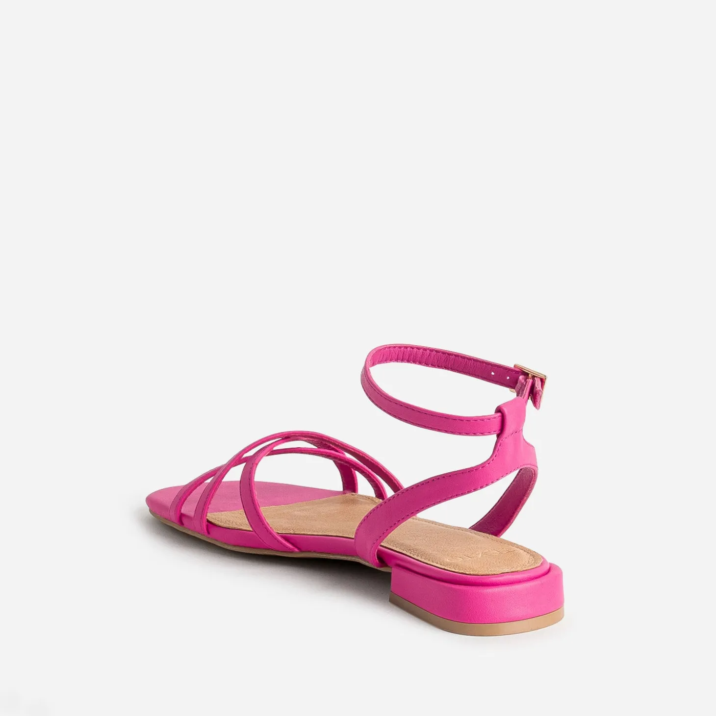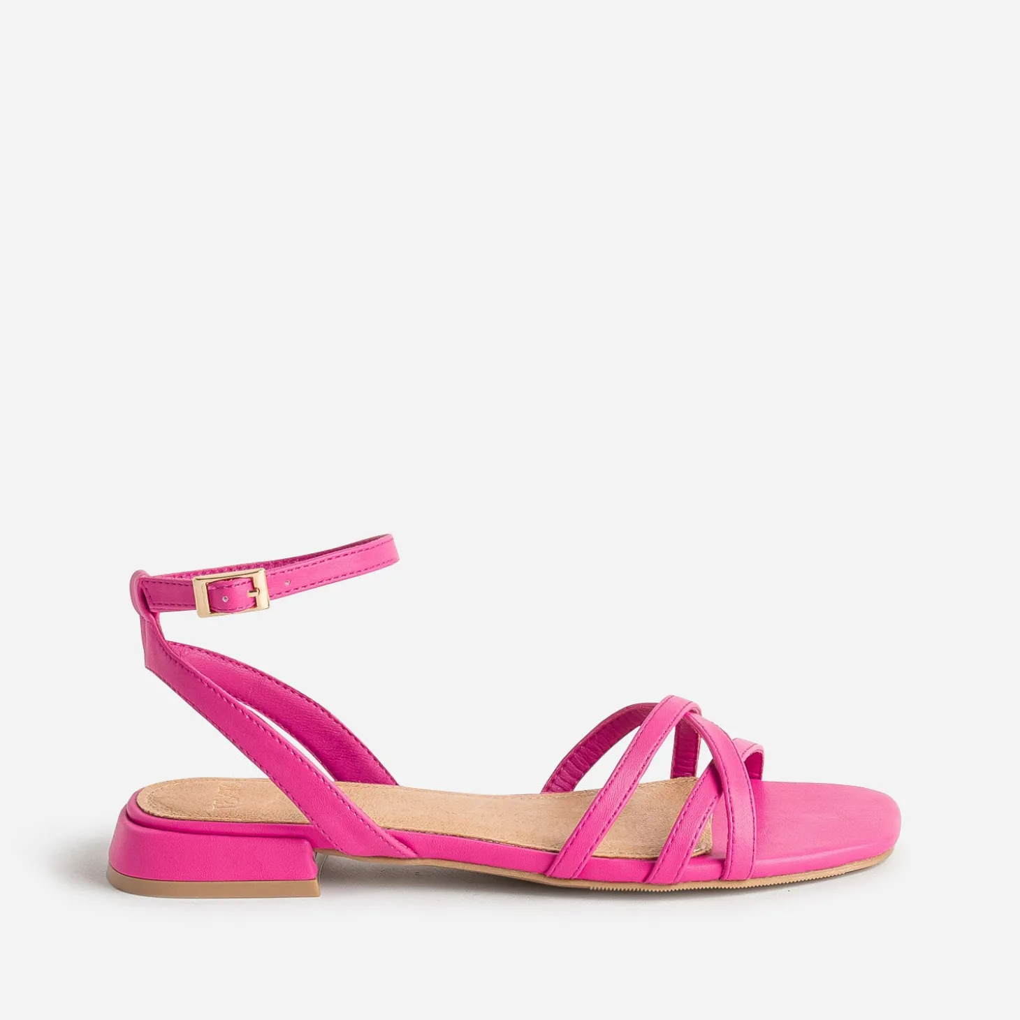 La sandale plate s’offre une nouvelle jeunesse, grâce à un coloris rose fuchsia et une finition mate. Sur le pied, autour de la cheville, les brides se croisent pour un maintien optimal. Avec un look army chic, dans les tons blanc et camel, avec un débardeur, un short en jean et un kimono long, laissez libre cours à vos envies.