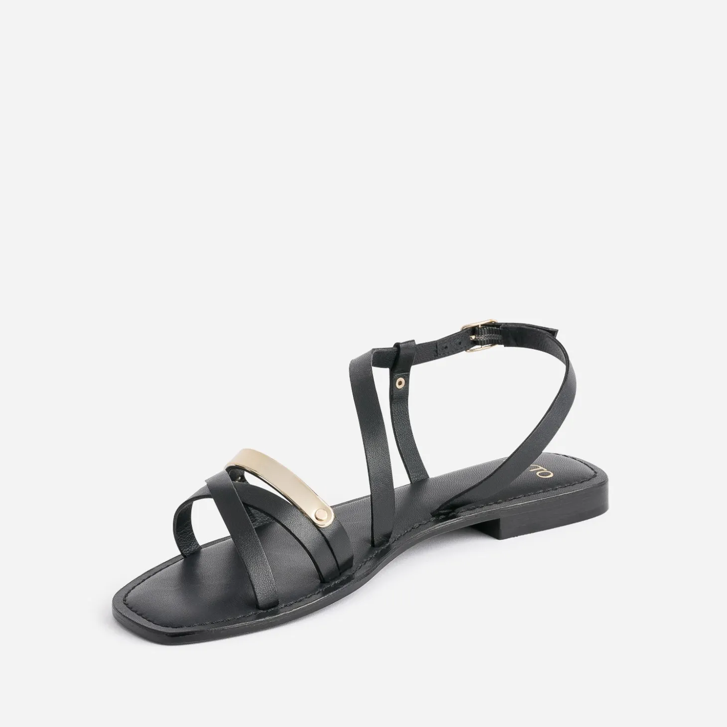 Sobriété et chic, deux mots pour définir cette sandale femme. En cuir noir, elle multiplie les brides fines, soit simples, soit croisées, soit décorée d’une barrette dorée. Avec une chemise et un pantalon cigarette, avec une marinière écrue rayée noire et un pantalon chino.