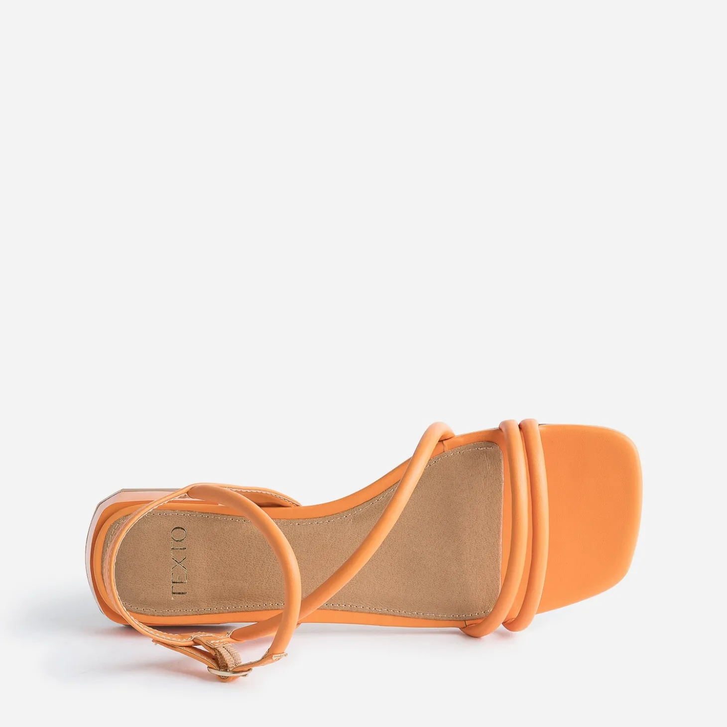 Le style tient souvent à peu de chose. Aux chaussures, par exemple. Au choix de la sandale, en été. Bout carré sublimé, coloris orange, elle maintient le pied par de fines brides rondes. Observez mieux : elle est montée sur un petit talon fantaisie verni de 2 cm. Un détail fun qui apporte une belle féminité, à renforcer avec des pièces floues et vaporeuses, dans les tons pastel.