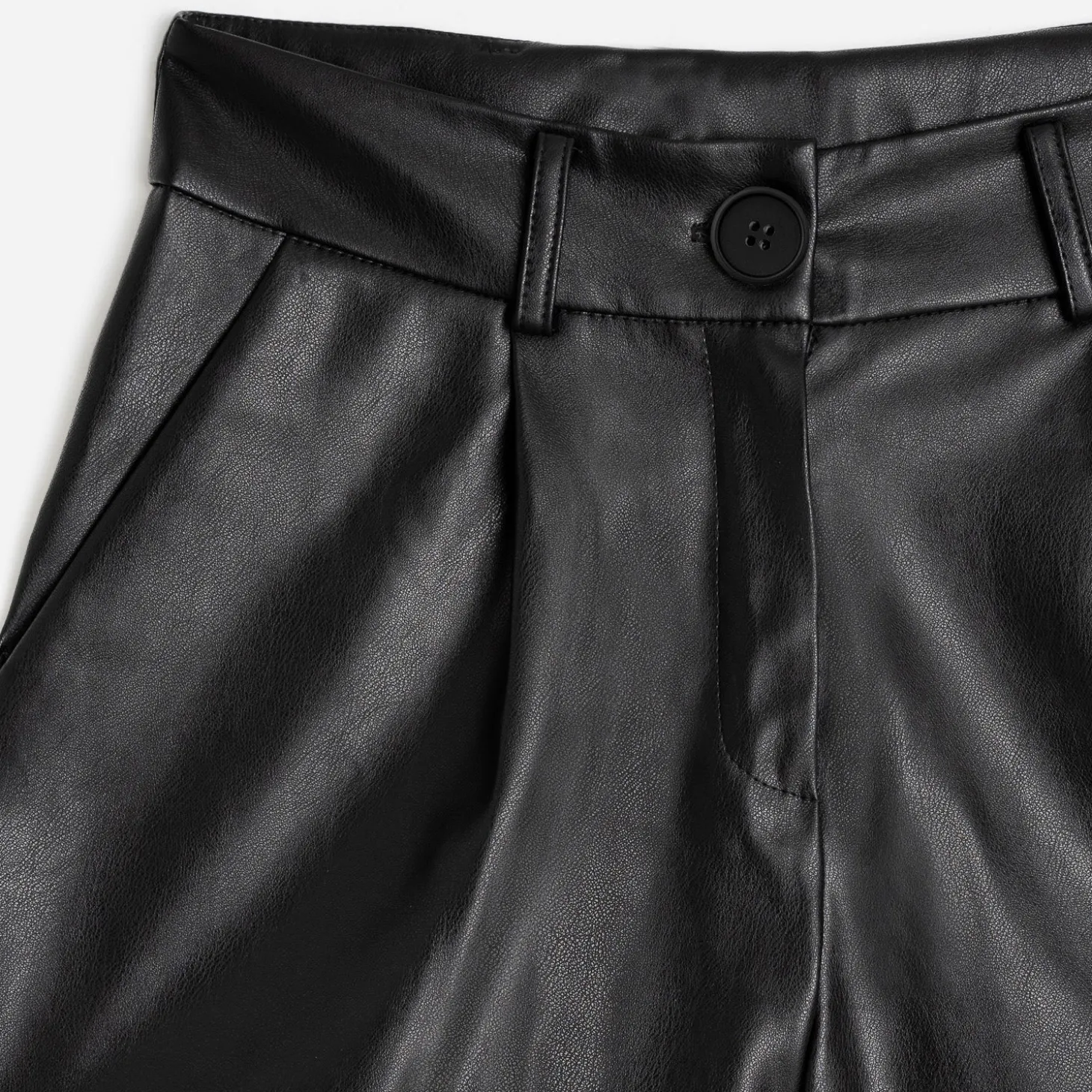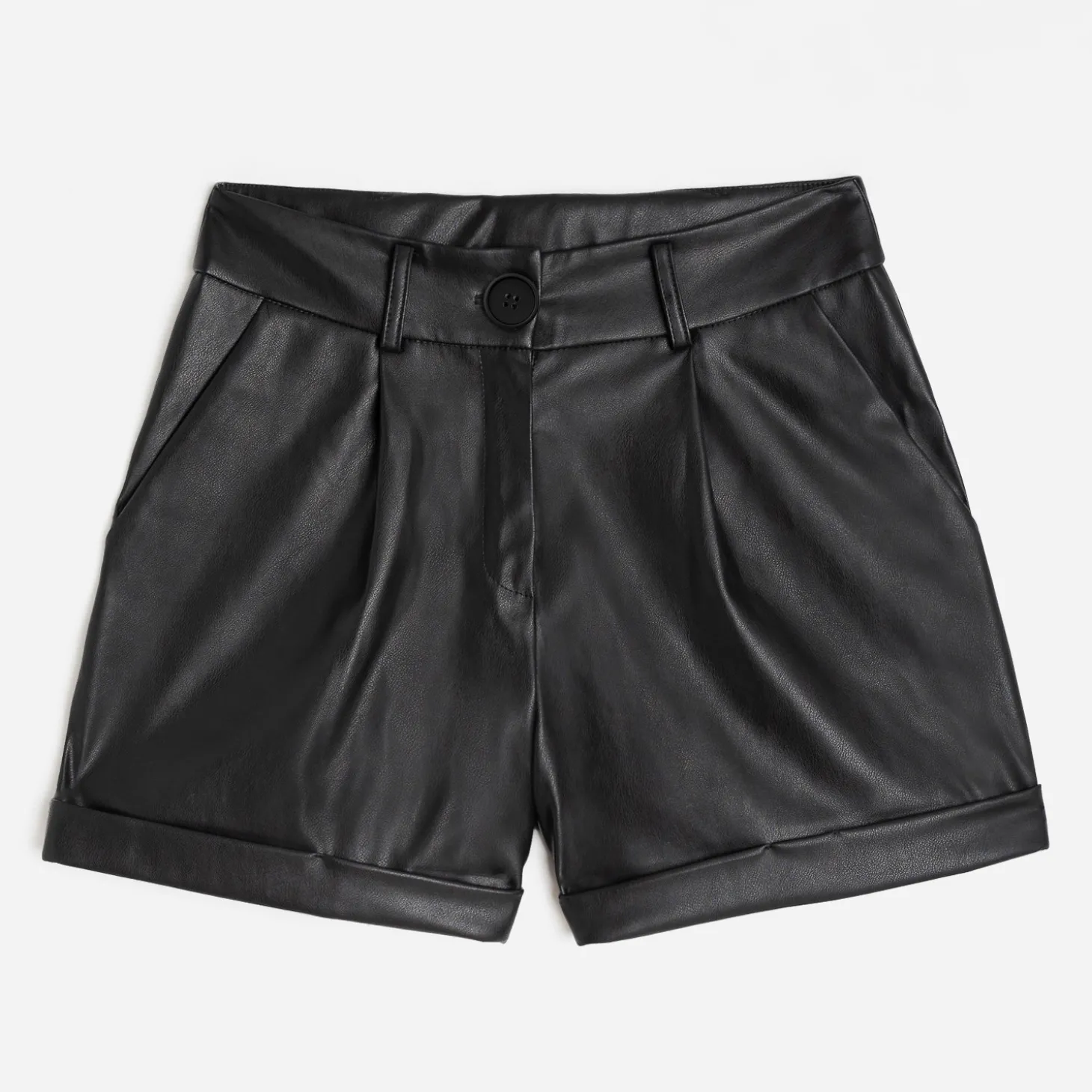 Ne vous fiez pas à la saison :le short est désormais une pièce intemporelle, à porter de janvier à décembre. Noir, il opte pour un style rock, par sa matière synthétique lisse. Une pièce à associer avec un pull à col roulé en tricot fin, des collants opaques et des bottes crantées.