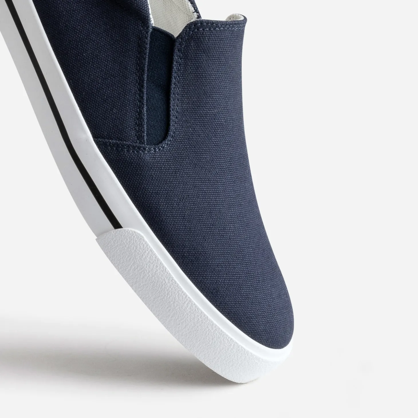 Reconnaissable à ses élastiques latéraux, le slip-on plaît d’abord pour son confort, ensuite pour son style casual. Choisissez-le en toile, dans un coloris bleu marine, facile à porter au quotidien. Privilégiez-le pour les week-ends, en mode décontracté.