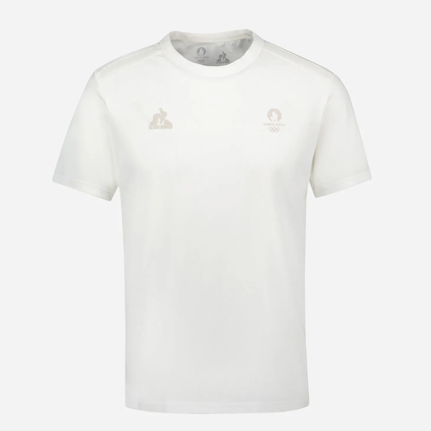 Logos PARIS 2024 et LE COQ SPORTIF sur la poitrine en technique print + encre gonflante en ton décalé.