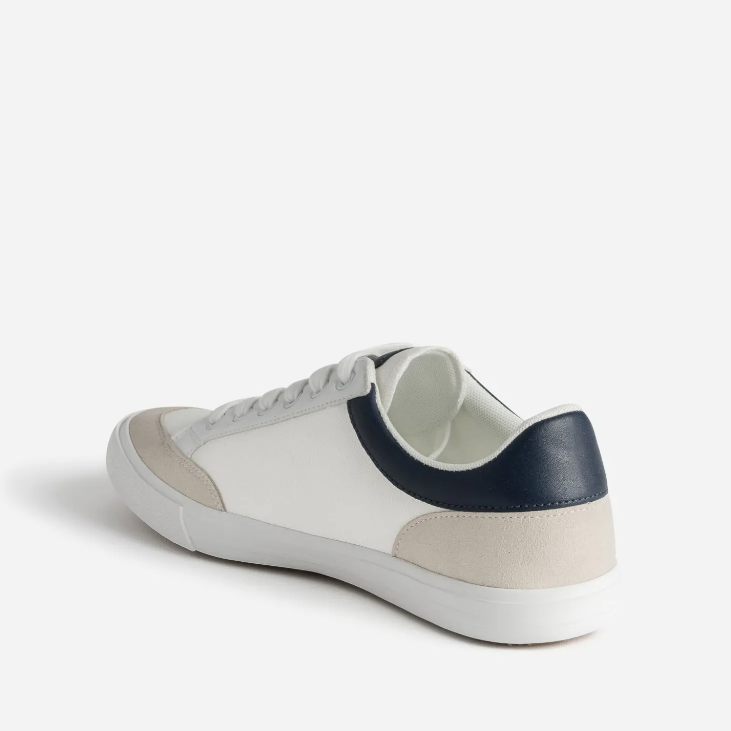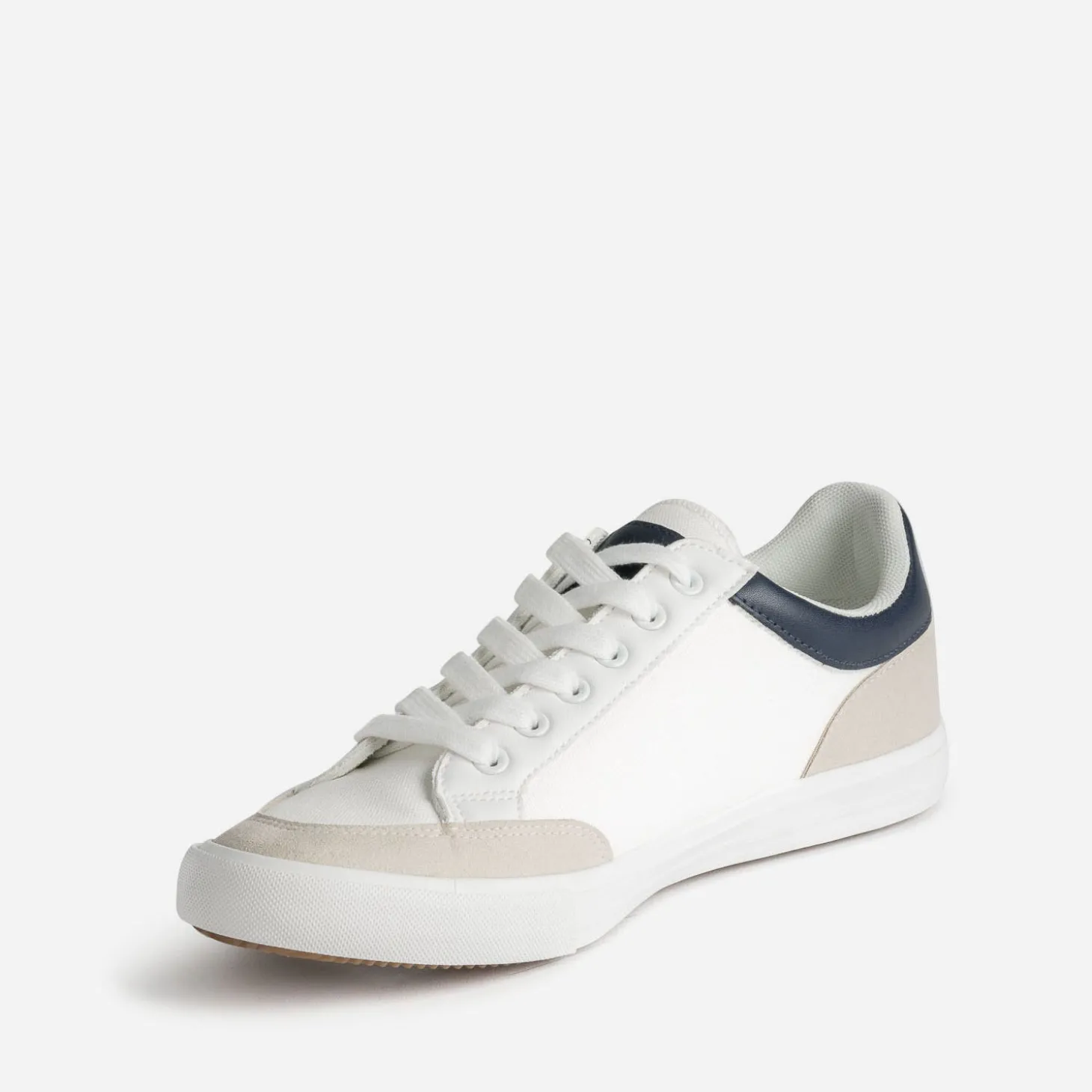 70% de coton, 30% de matières synthétiques lisse et suédée, cette tennis pour homme devient plus légère, pour s’adapter à la saison. Blanche, elle est soulignée degris clair sur le bout et le contrefort, et de bleu marine sur le col de la tige. Marinière classique sur jean gris, restez dans les tonalités assorties.