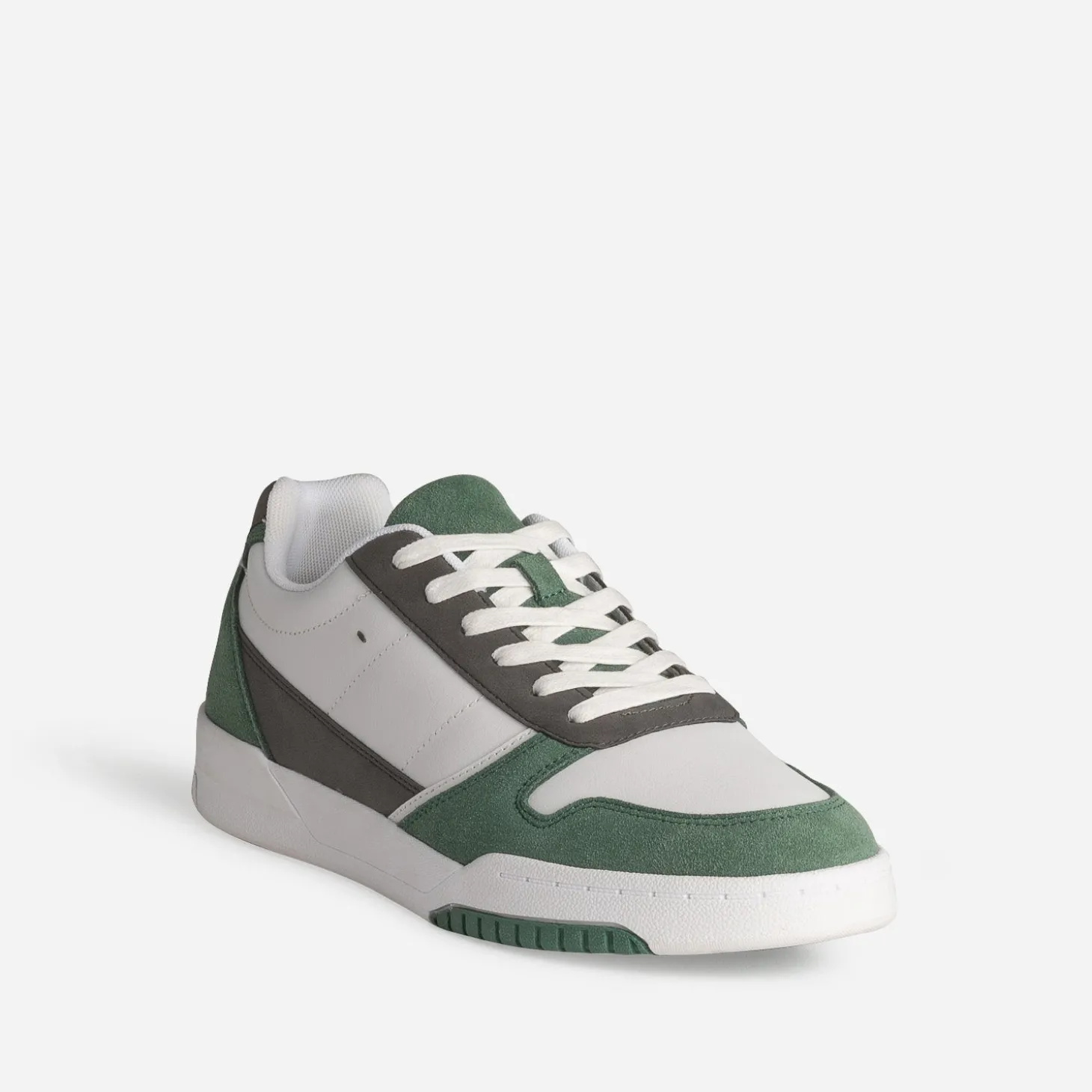 Tennis blanche, grise et verte mix cuir