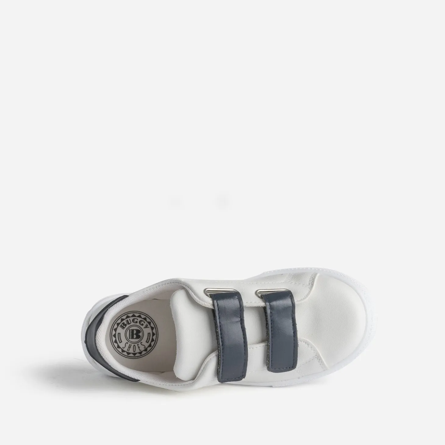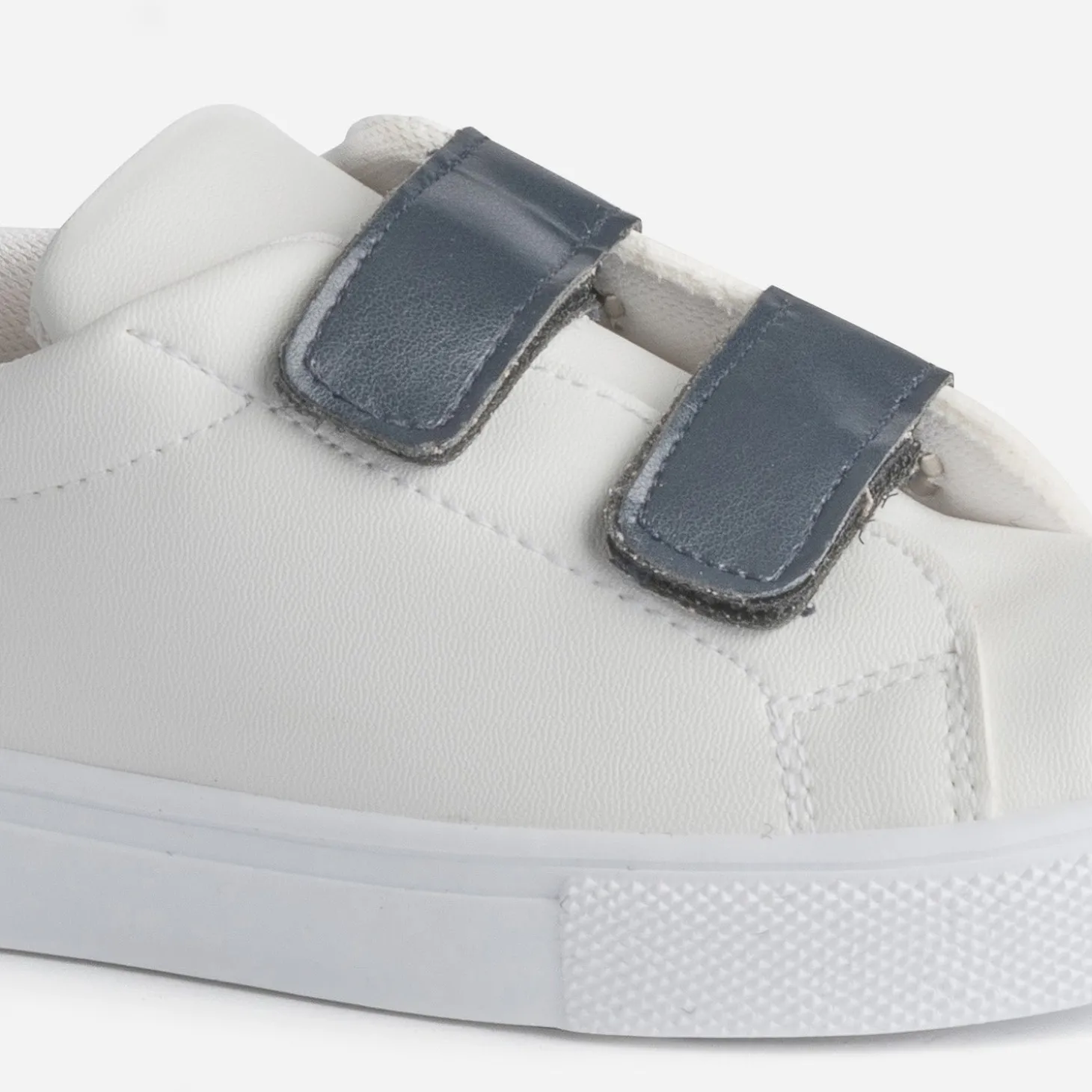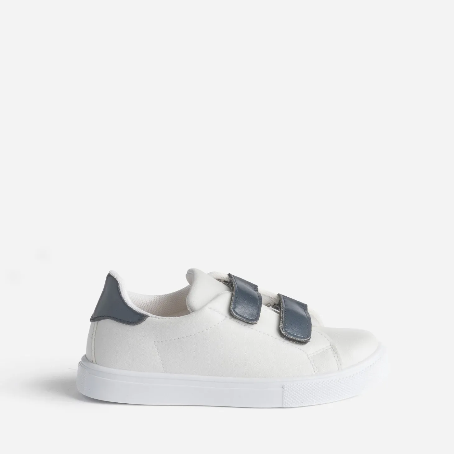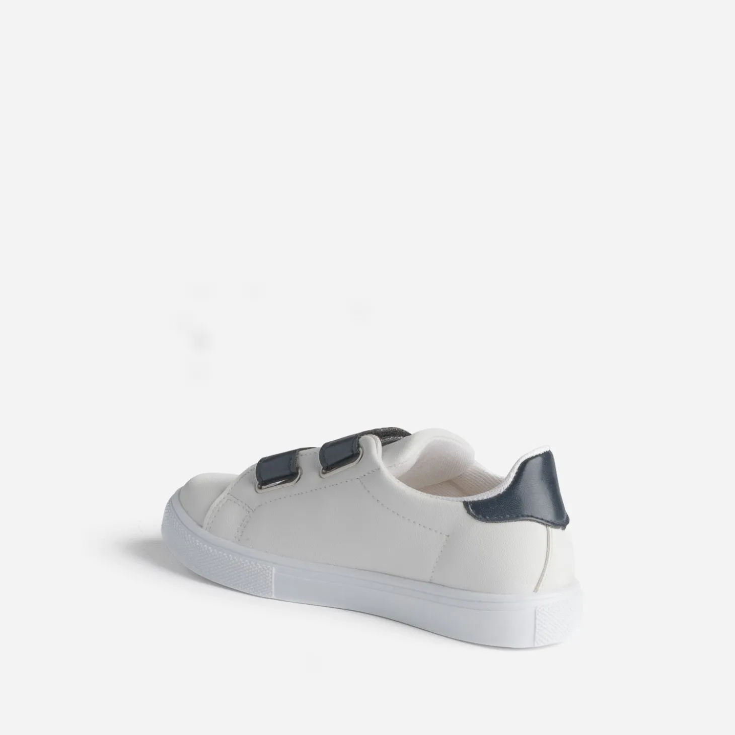 Matière synthétique lisse blanche, double scratchs marine, en écho au contrefort, la nouvelle tennis prône un retour à la simplicité. Un modèle mixte, facile à associer avec toute sa garde-robe.