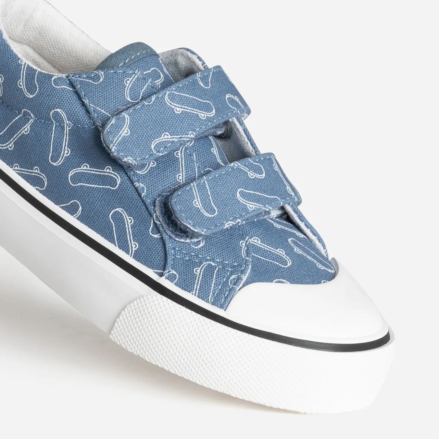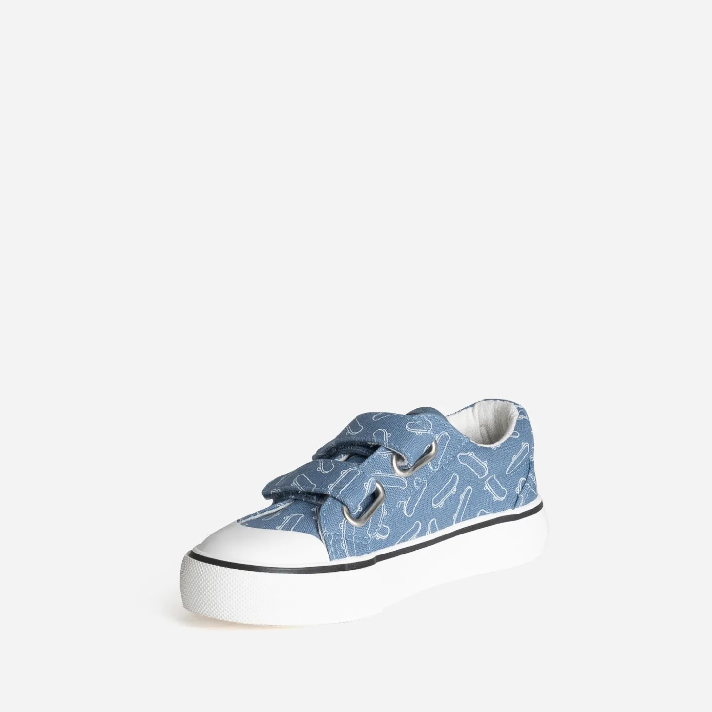 Bord cuvette sur le bout de la semelle renforcée et fermeture par scratchs : pas de doute ! Cette tennis pour garçon s’adapte à la vie trépidante des petits. En toile bleu moyen, elle s’anime d’un imprimé skates en all over, pour séduire les fans de planche à roulettes. Un modèle idéal, dès le printemps, avec des tenues décontractées.