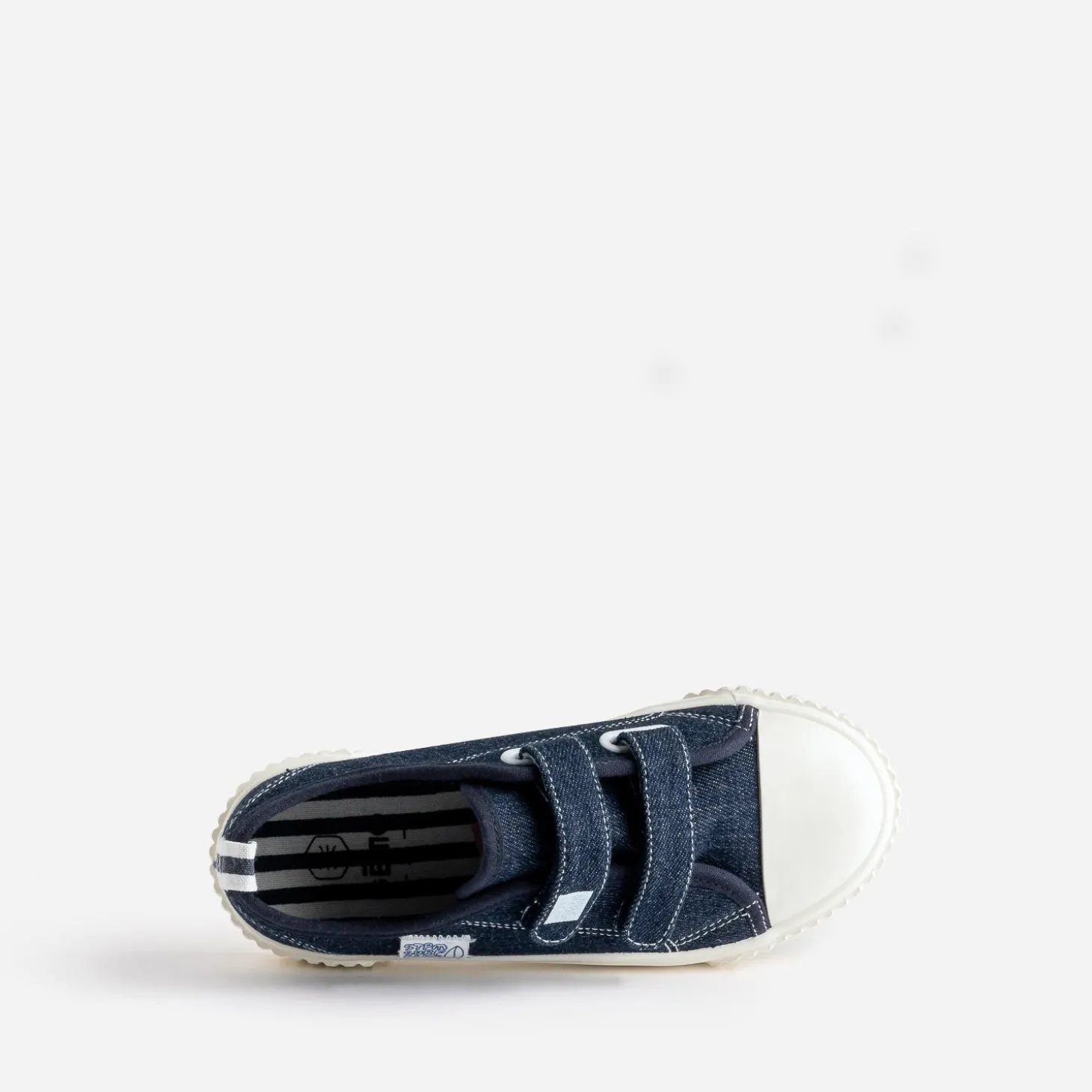 La tennis en toile qui matche avec tout, c’est la tennis inspiration denim brut. Fermée par double scratch, elle présente une doublure à motifs rayures, qui fait écho au galon placé sur le contrefort. Un modèle intemporel, idéal pour la mi-saison.