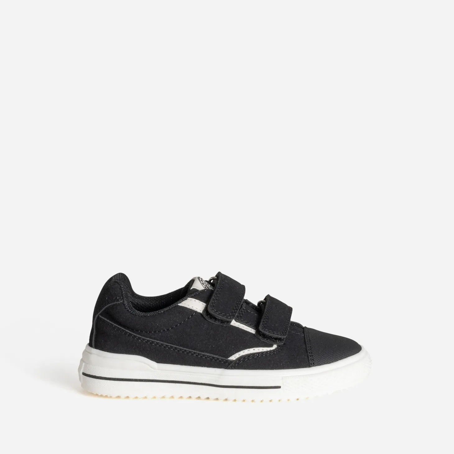 Revenir aux classiques a souvent du bon. C’est l’idée de cette tennis pour petit enfant. En toile noire, elle est rythmée de découpes blanches sur les côtés. Le bout est renforcé par une matière synthétique rigide, et la semelle est crantée, pour une meilleure adhérence. Elle se ferme par deux scratchs, pour l’accompagner dans son autonomie. Un modèle intemporel, facile à coordonner avec les tenues du quotidien.